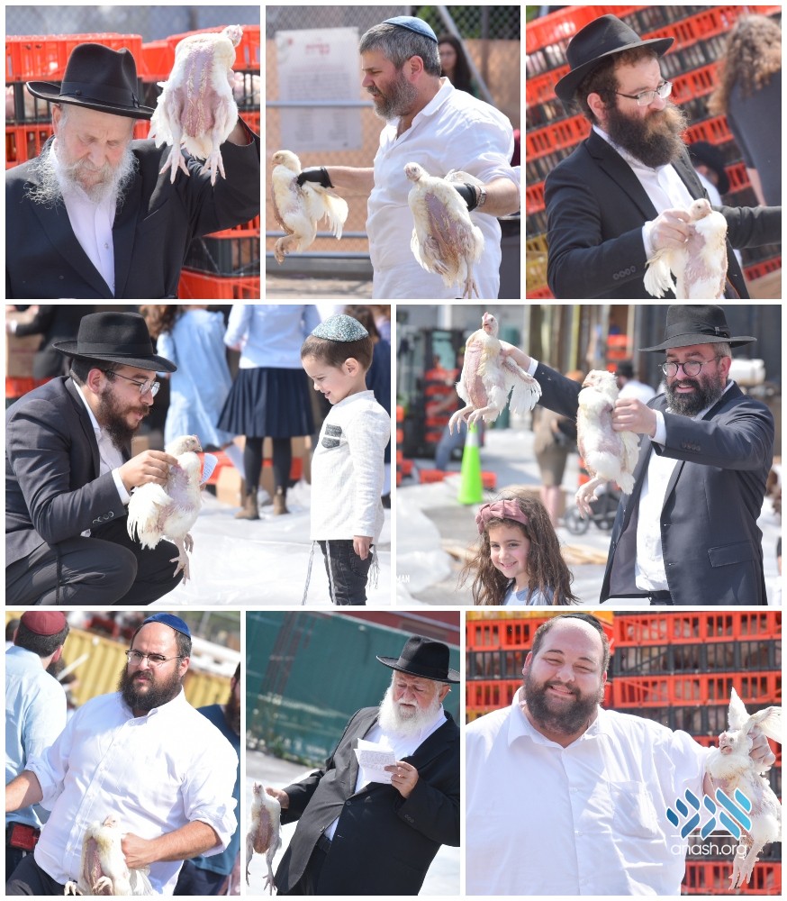 Crown Heights families gathered on Sunday to perform an early kaparos at Bais Rivka ahead of Yom Kippur. The kaparos was organized by NCFJE and subsidized by donors.