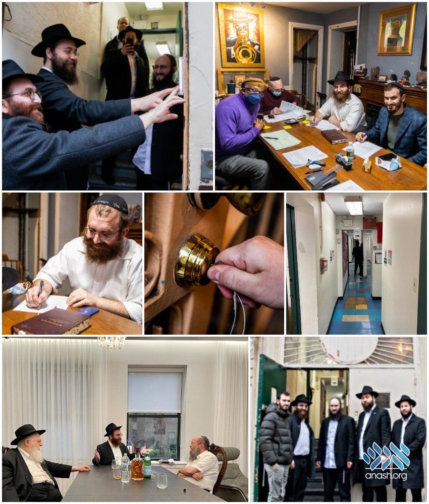 After a month of high-stakes negotiations, the four-story building located at 755 Eastern Parkway was purchased for the 770 Yeshiva. The purchase was celebrated with a Kevius Mezuza ceremony.