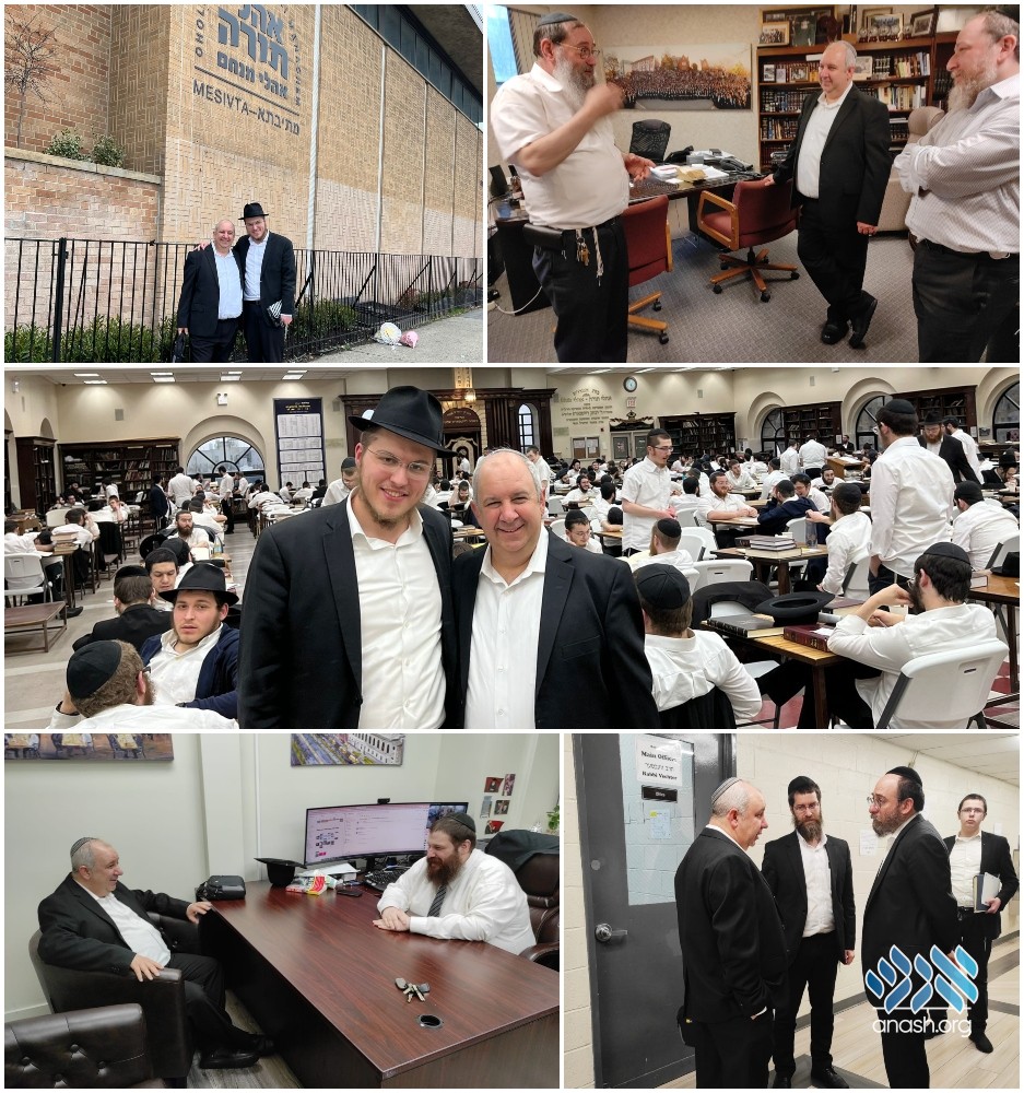 His visit to Crown Heights lasted about three and a half hours, during which he visited the Oholei Torah institutions, where he sat in a meeting with the Rosh Yeshiva of the Oholei Torah Mesivta, Rabbi Moshe Silman.