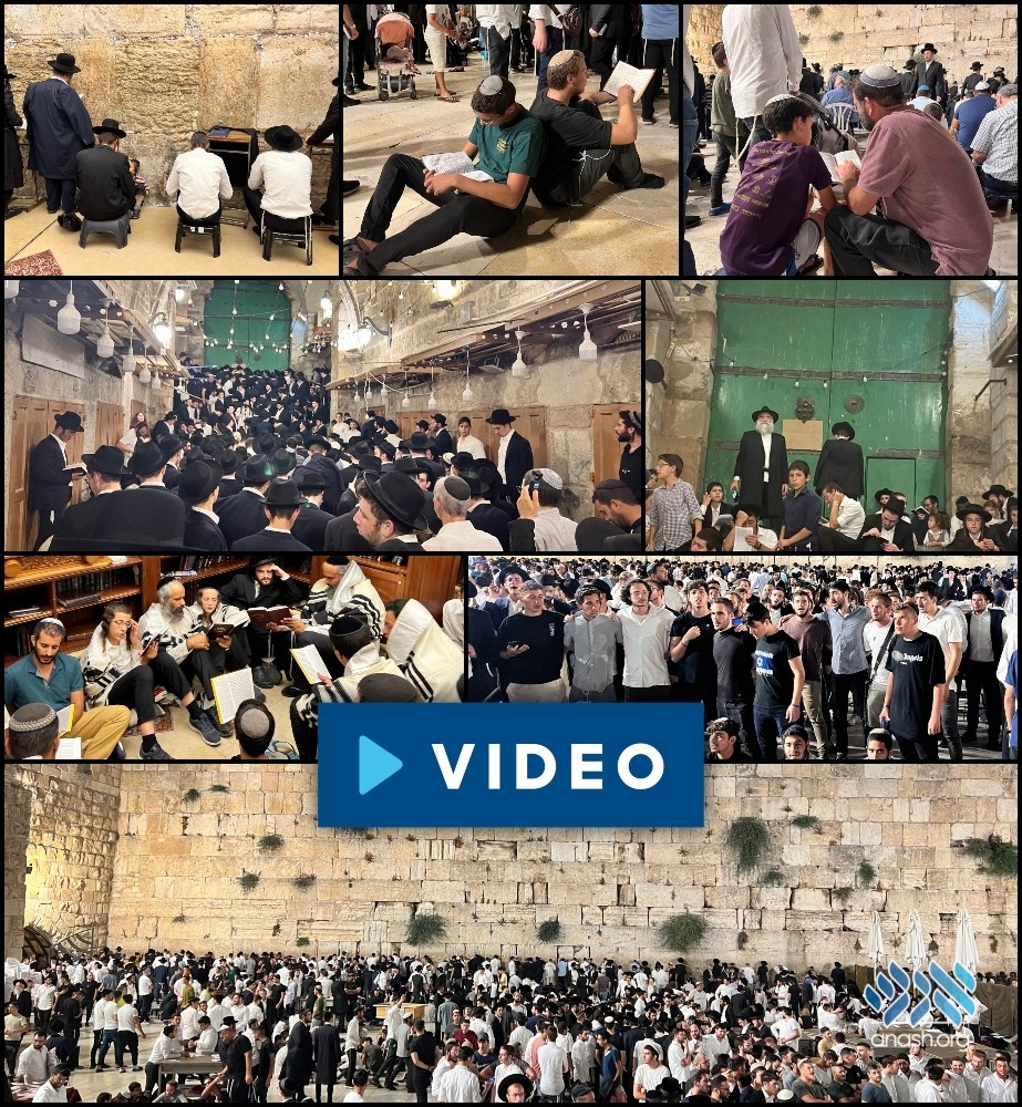 As Tisha B’av began on Motzei Shabbos, thousands streamed to the Kosel and the gates of Har Habayis to read Eicha, recite kinos, and mourn the destruction of the Batei Mikdash.