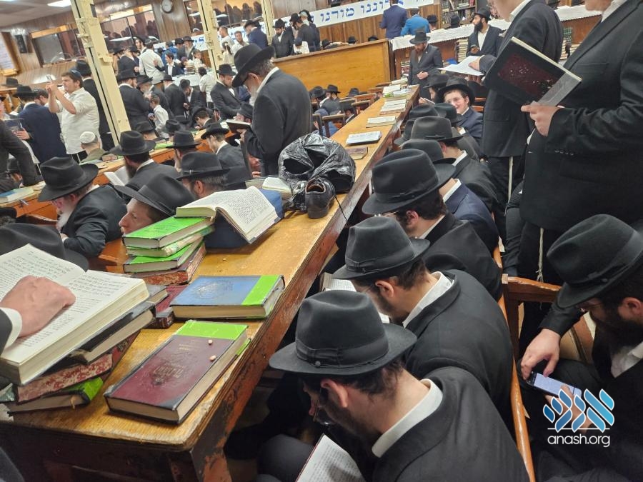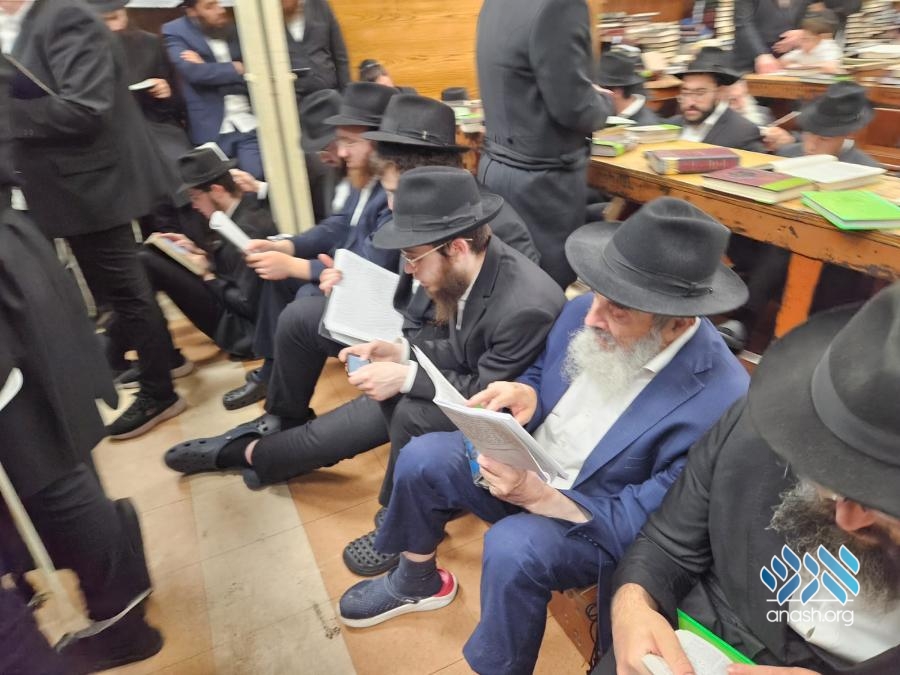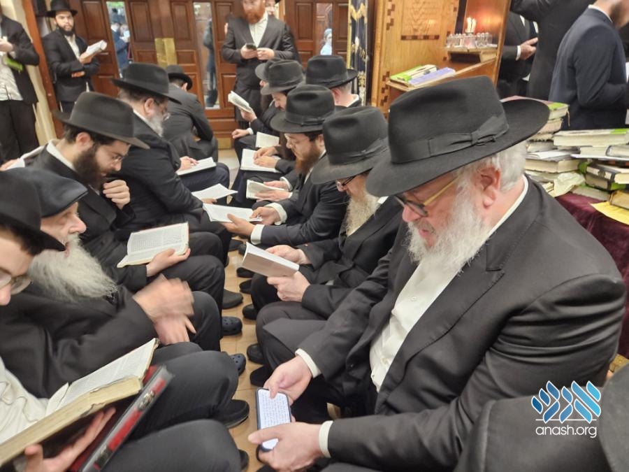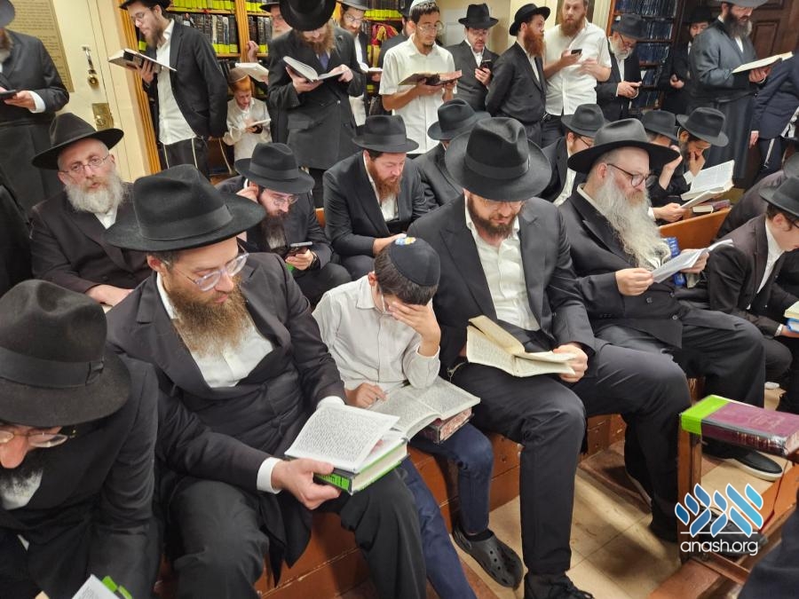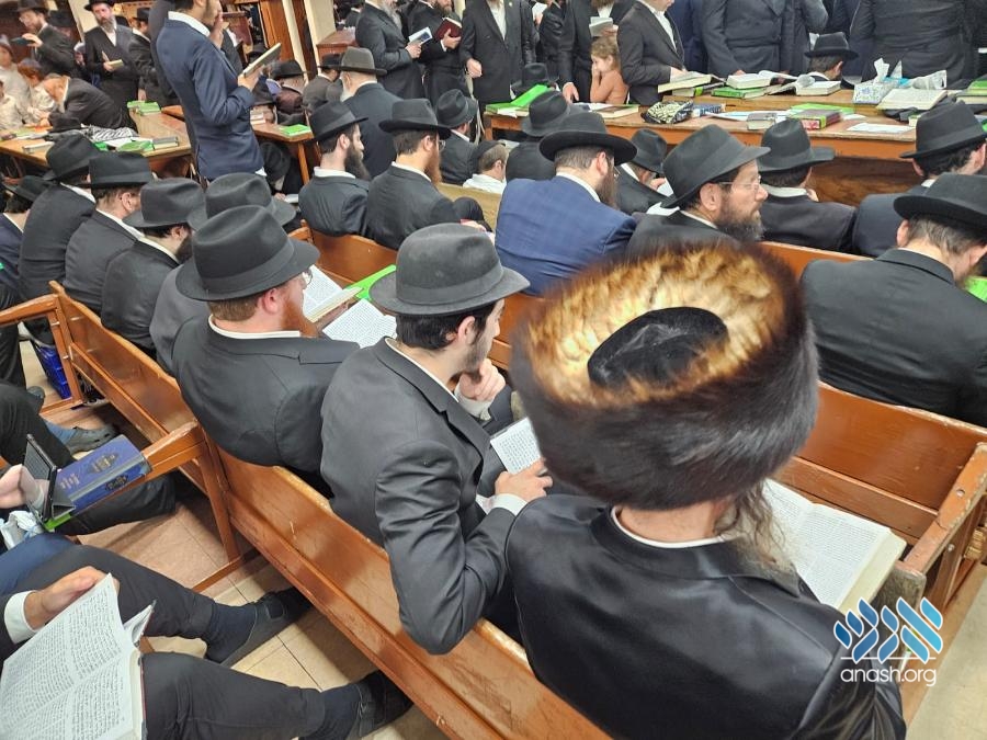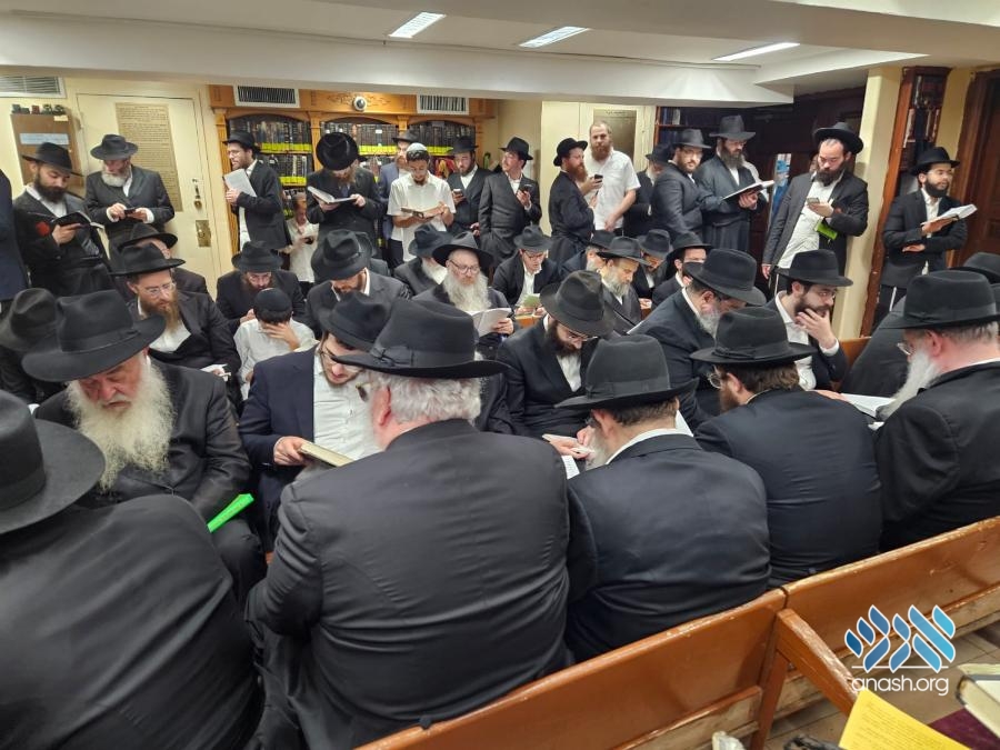Hundreds filled 770 on Motzei Shabbos, the night of Tisha B’av for ma’ariv and the reading of Eicha, led by Rabbi Michoel Slavin, followed by a siyum and a shiur on inyonei hachurban.