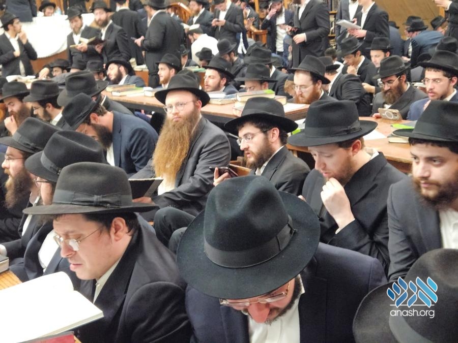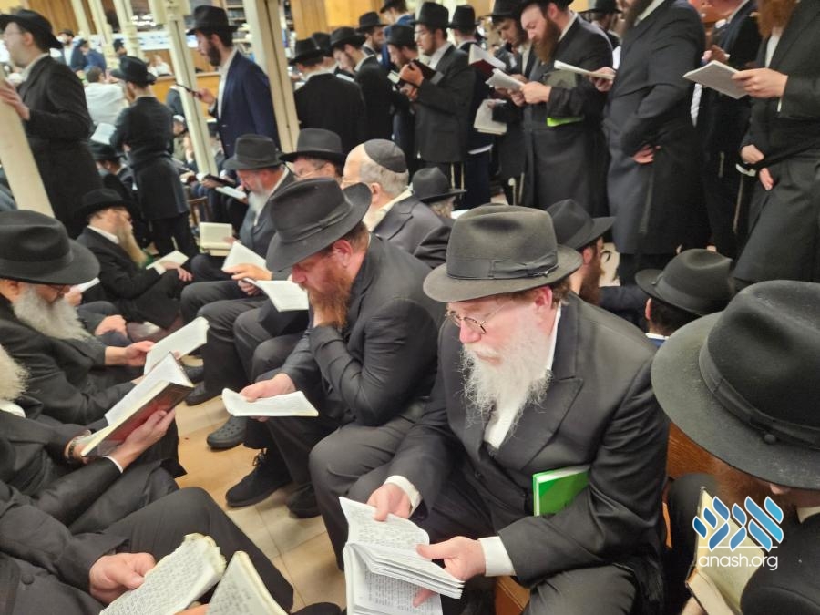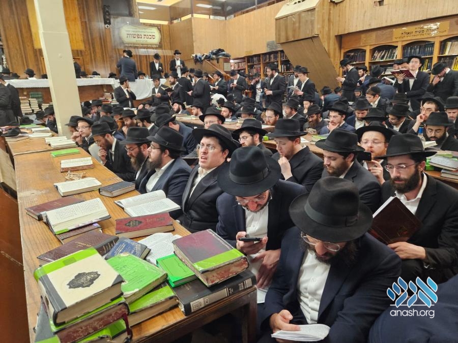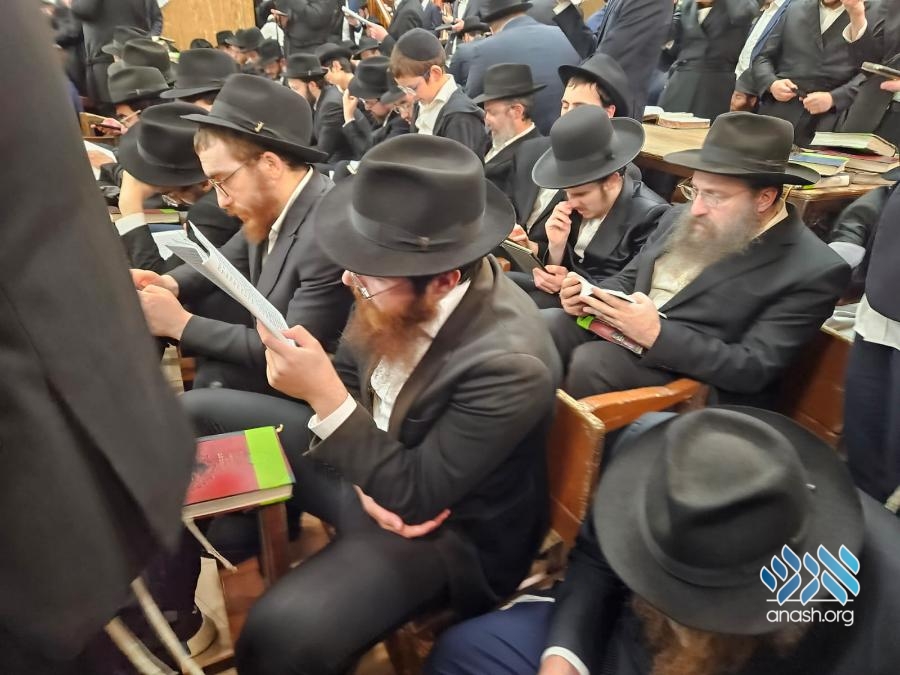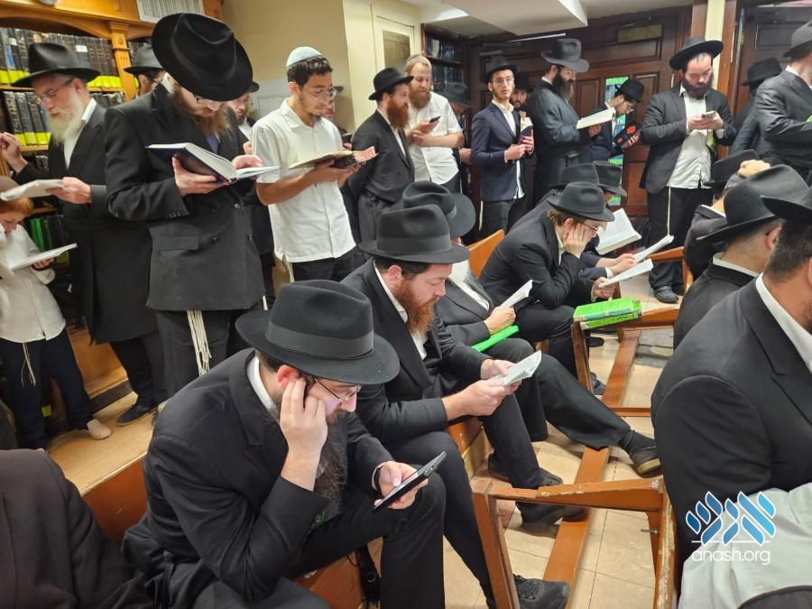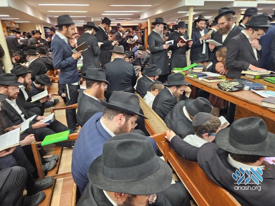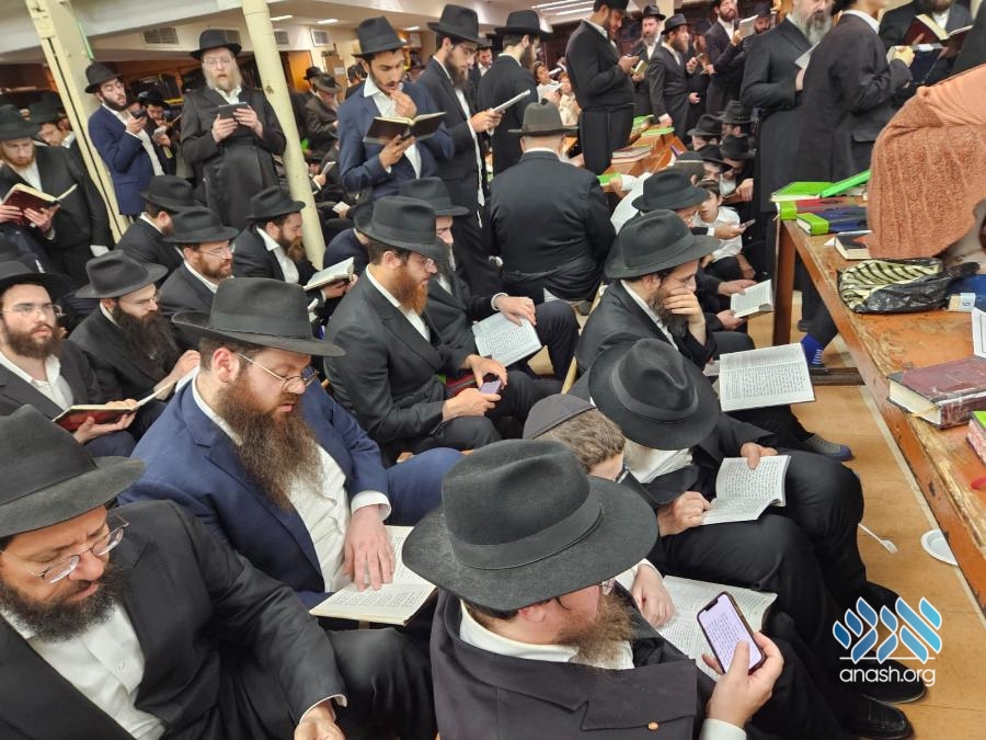 Hundreds filled 770 on Motzei Shabbos, the night of Tisha B’av for ma’ariv and the reading of Eicha, led by Rabbi Michoel Slavin, followed by a siyum and a shiur on inyonei hachurban.