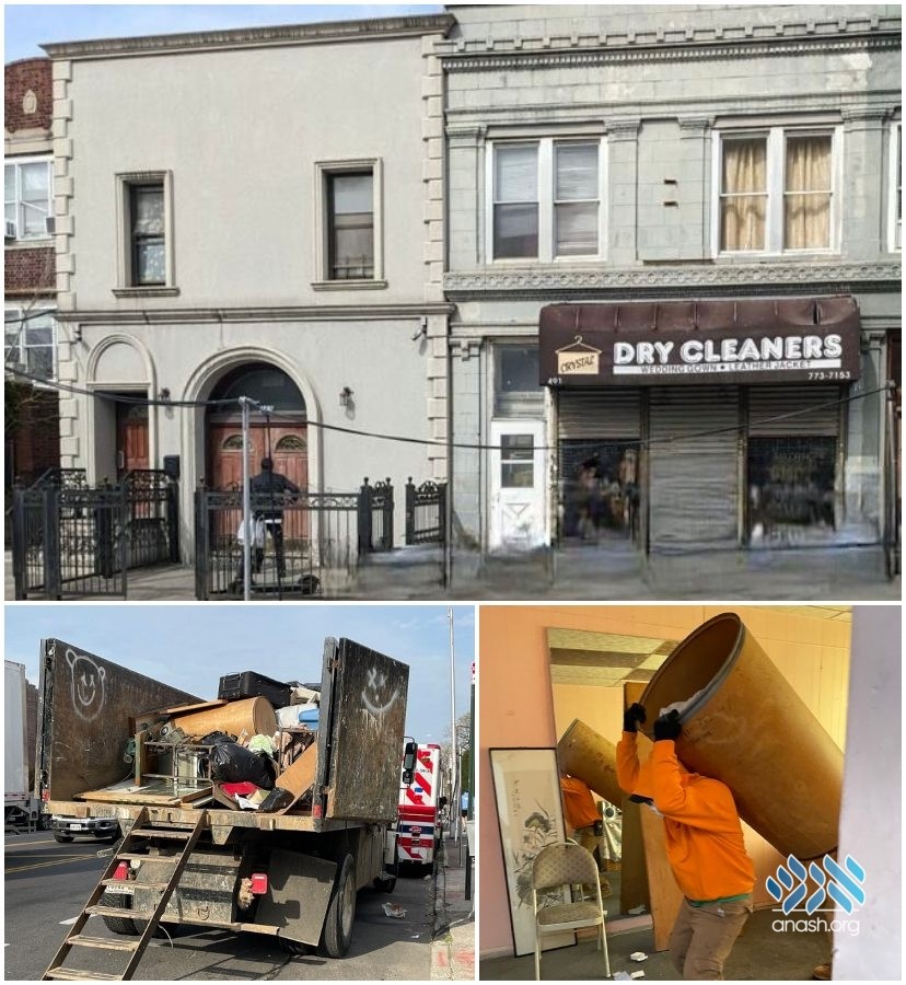 Crews were seen this morning clearing out the building recently purchased by Empire Shtiebel to make room for the expansion of the Shul and Mikvah premises.