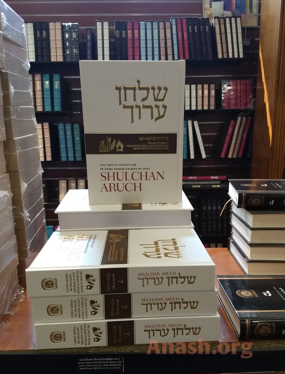 The newly released English Shulchan Aruch volume 7 which covers parts of Hilchos Pesach of the Alter Rebbe, is now being sold at kehos for a reduced rate.