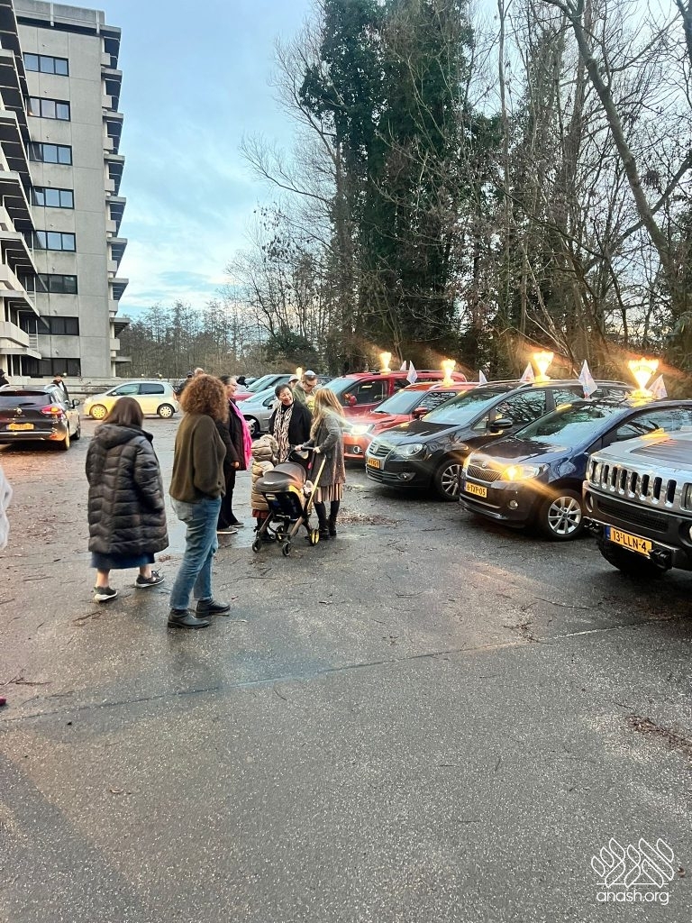 In the heart of Amsterdam, the shluchim organized a vibrant Chanukah menorah parade, showcasing the community’s resilience and faith. The parade, which drove through the city’s center, the Dams Square, and more, featured a procession of 30 cars adorned with menorahs, accompanied by police escort and enthusiastic onlookers.