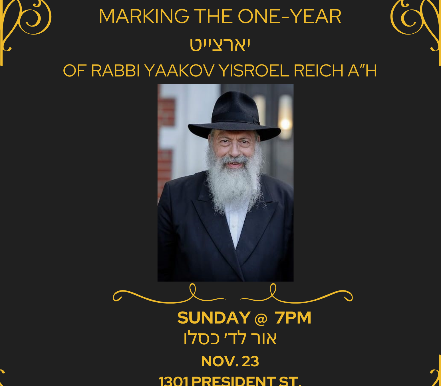 Event to Mark Yahrtzeit of Rabbi Yaakov Reich