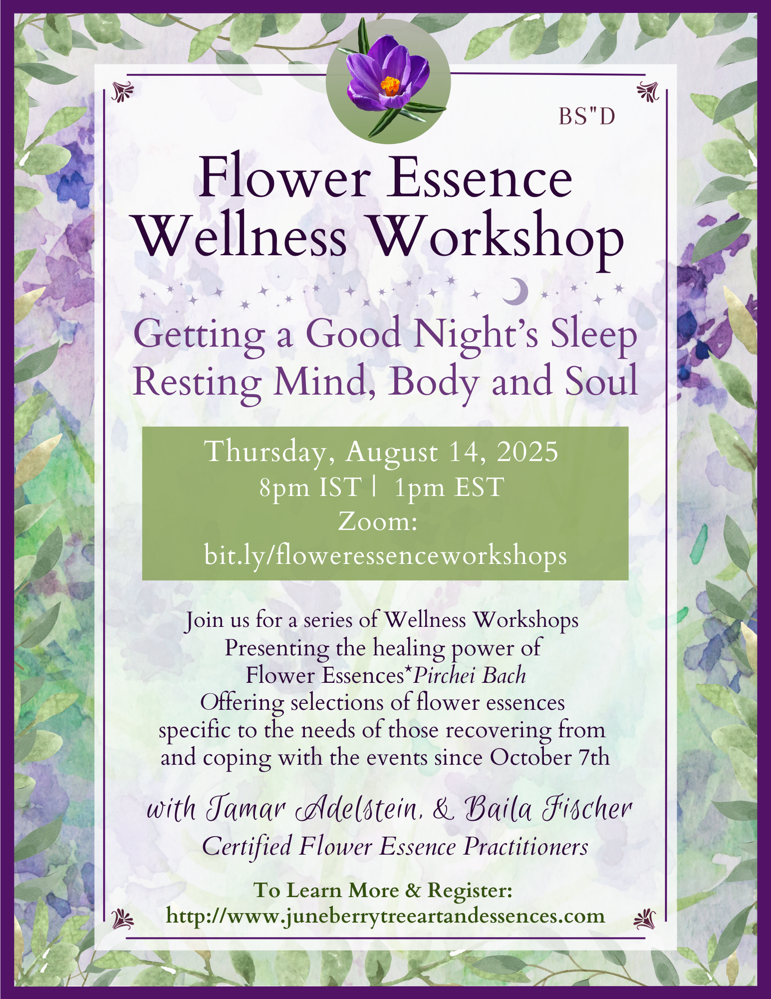 Join us for the first in a series of free Flower Essence Wellness Workshops on Zoom with Tamar Adelstein & Baila Fischer