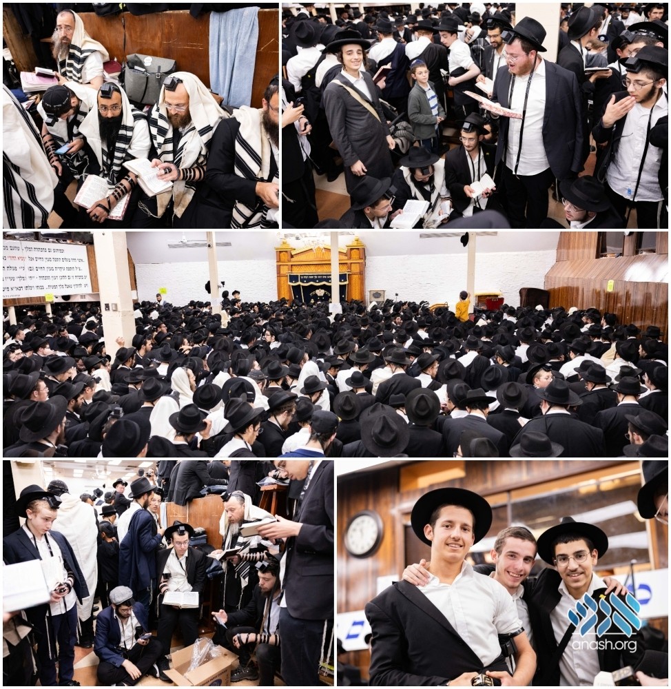 Thousands of anash and bochurim packed 770 for shacharis of Erev Rosh Hashana, after which every square inch became prized real estate for groups saying hataras nedarim.