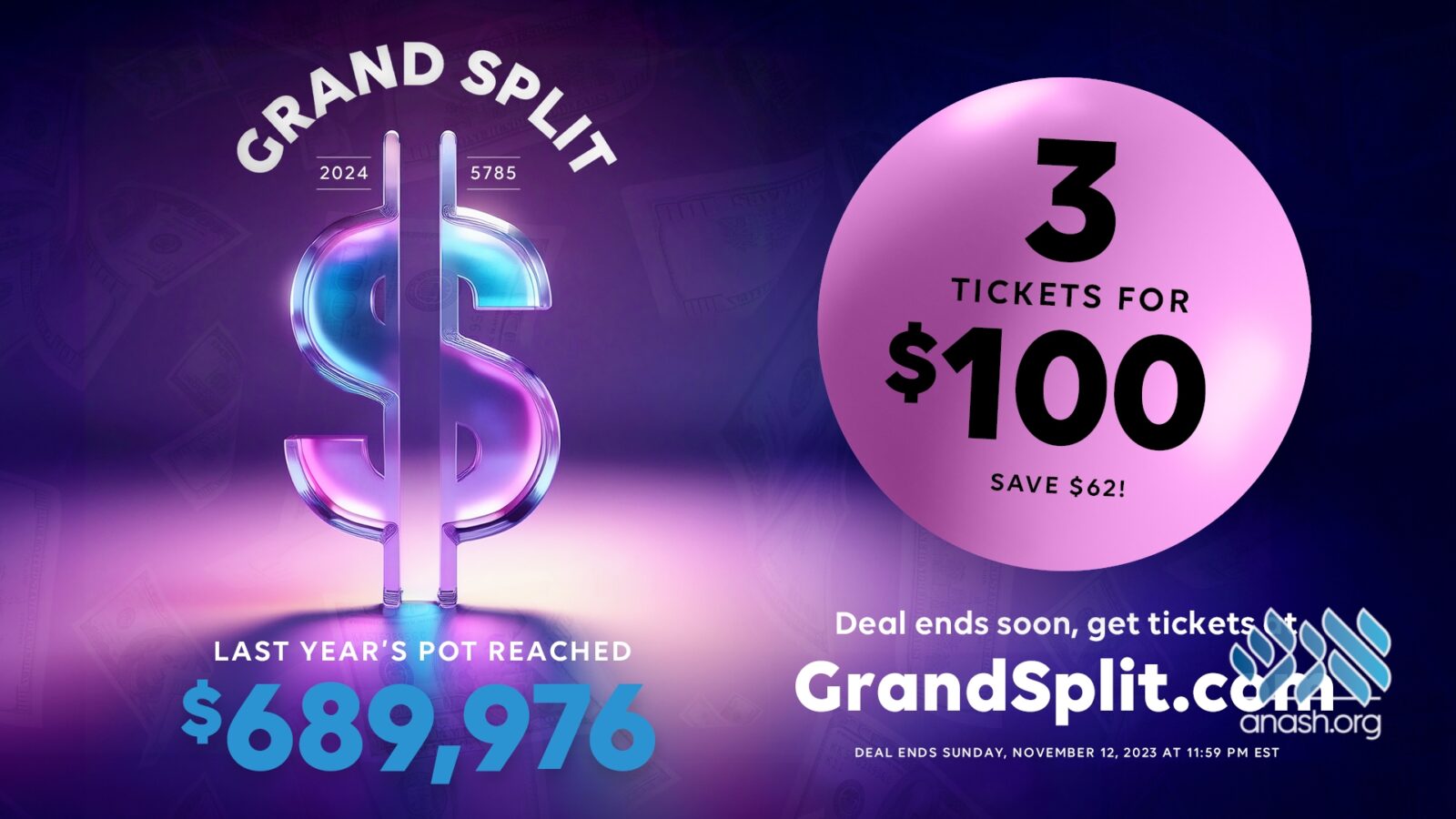 TEN YAD GRAND SPLIT – 3 TICKETS FOR $100 – 1 DAY LEFT