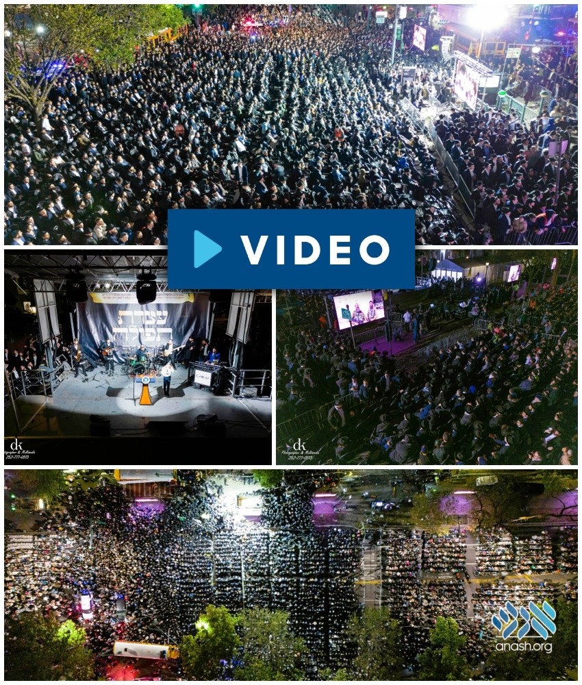 Drones captured stunning photos and video of the 20,000 people gathered in Crown Heights to daven for the safety and security of our brethren in Eretz Yisroel who are under attack by Hamas terrorists.