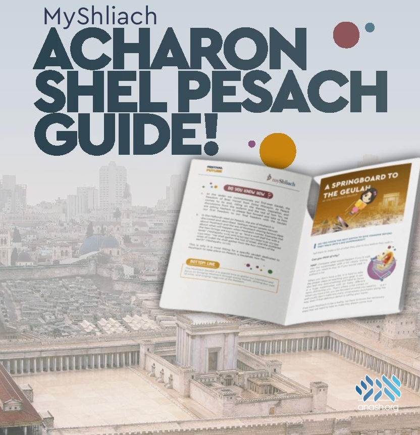 The last days of Pesach are upon us, ushering in focus on Moshiach and the future Geulah. The Moshiach Seuda, the climax of the Yom Tov of Pesach, is an extremely powerful time and a unique opportunity to discuss Moshiach with your family. To help your family connect with the themes of this special occasion, MyShliach created the at-home family Farbrengen to lead your family through the Moshiach Seuda. The guide is complete, with stories, games, niggunim, and is designed to engage children of all ages.