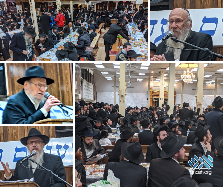 The farbrengen was addressed by Rabbi Ahron Yakov Schwei member of Crown Heights Beis Din, Rabbi Sholom Avtzon veteran mechanech and author of the Rabbeim biography series, and Rabbi Zushe Posner mashpia in Lod, Eretz Yisroel. The MC was Rabbi Shmuel Samuels.