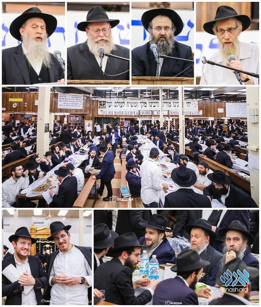 The farbrengen was addressed by Harav Yosef Yeshaya Braun, member of Crown Heights Beis Din, Rabbi Michoel Seligson, and Rabbi Shimon Silman, founder of the Rabbi Yisroel Aryeh Leib Research Institute. The MC was Rabbi Dovid Kahanov.