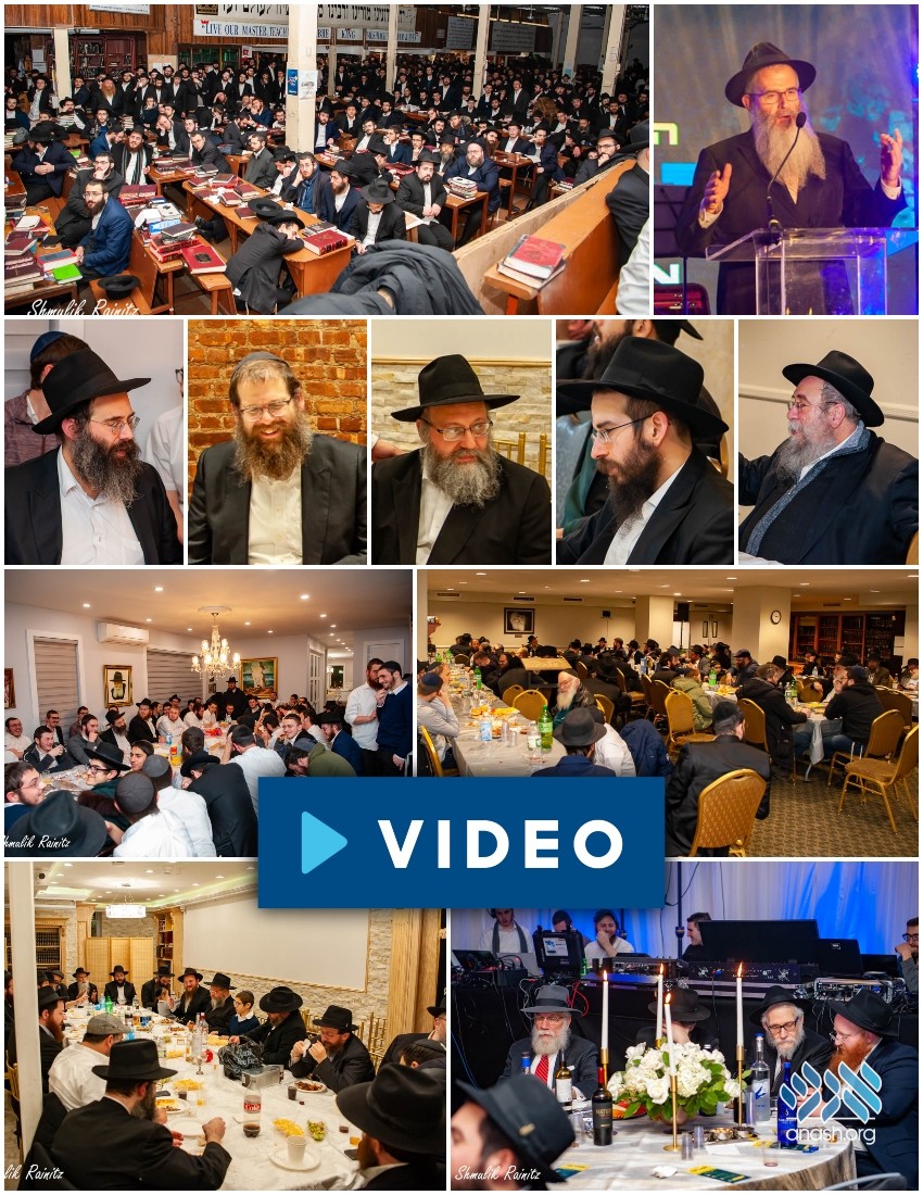 Hundreds gathered at 770 Eastern parkway to watch a video of the Rebbe’s farbrengen of Yud Shevat 5742