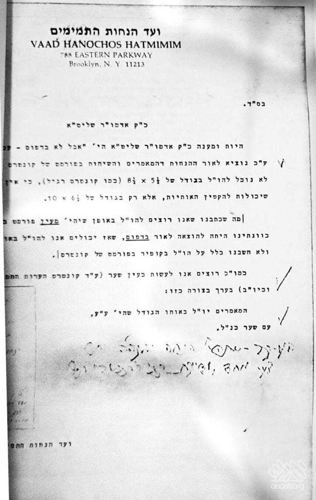 In a lengthy answer to the hanhala of Tomchei Temimim at 770, the Rebbe wrote (11 Tishrei 5721):