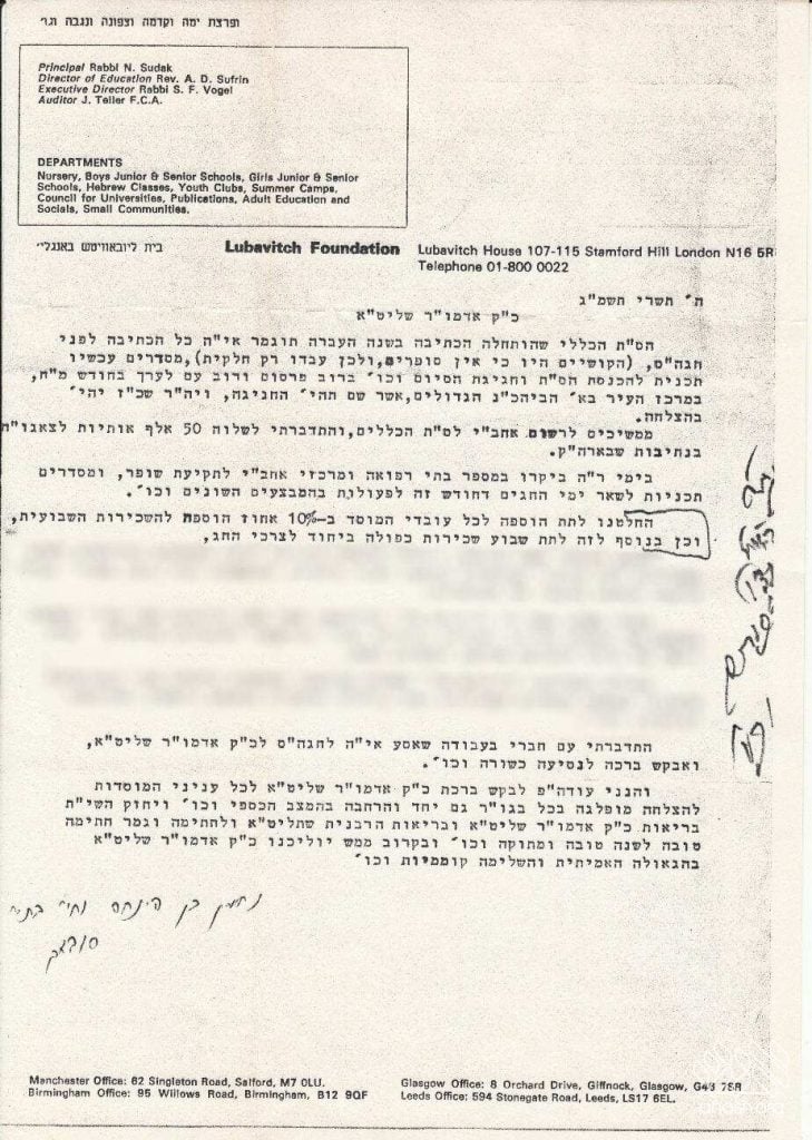 To Reb Nachman Sudak, who wrote about fellow shliach Reb Faivish Vogel, who was considering taking time off from his Lubavitch activities in England to learn and receive semicha – since he was bothered by the fact that he never received semicha before leaving yeshiva – the Rebbe wrote (21 Sivan 5742):