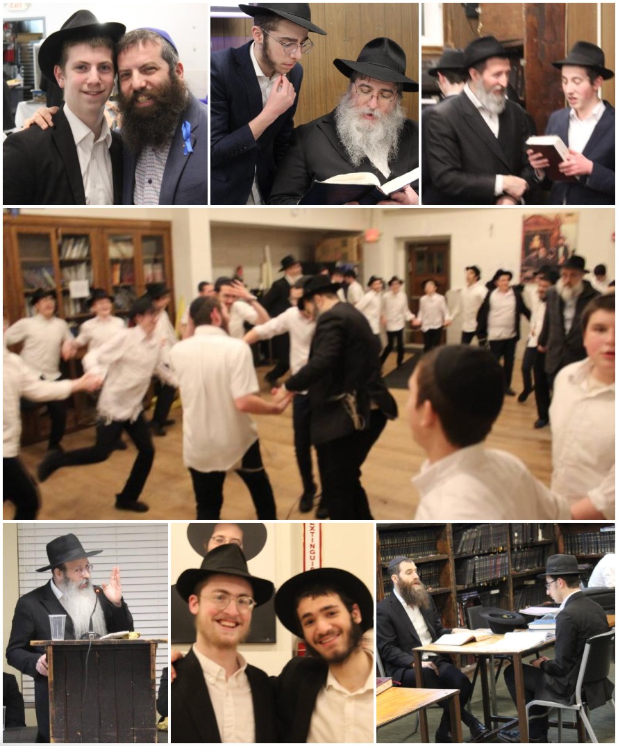 After Minchah, there was a special farbrengen in the Zal with Rabbi Levi Simpson, mashpia in Yeshiva. The farbrengen was followed by Maariv, a video of the Rebbe and dancing for Chodesh Adar led by musician Rabbi Dovid Altein (Kingston, PA) and Rabbi Avigdor Tzeitlin (CH) and Rabbi Yosef Kanofsky (CH).