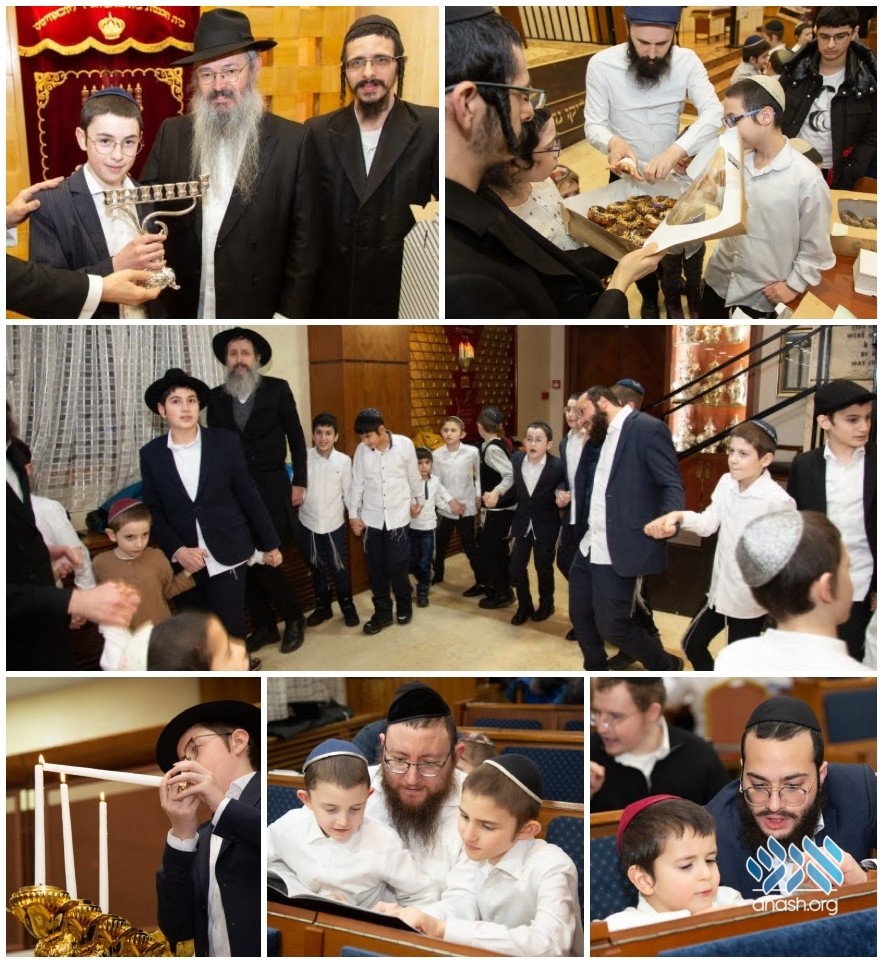 Mashpia Rabbi Elazar Mordechai Grossman encouraged the children with warm words about the importance of their Torah study, and the program concluded with a raffle on a silver menorah. The winner was Yehuda Mondshine, who was called up with his father, Rabbi Dovid Mondshine, to receive the prize.