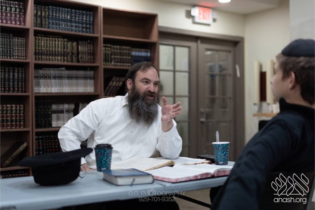 The inspiration carried through Shabbos day, as Shiur Beis Mashpia Rabbi Levi Altein and Shiur Gimel Maggid Shiur and Mashpia Rabbi Hudi Frankel led a warm and uplifting farbrengen, connecting with bochurim and parents alike.