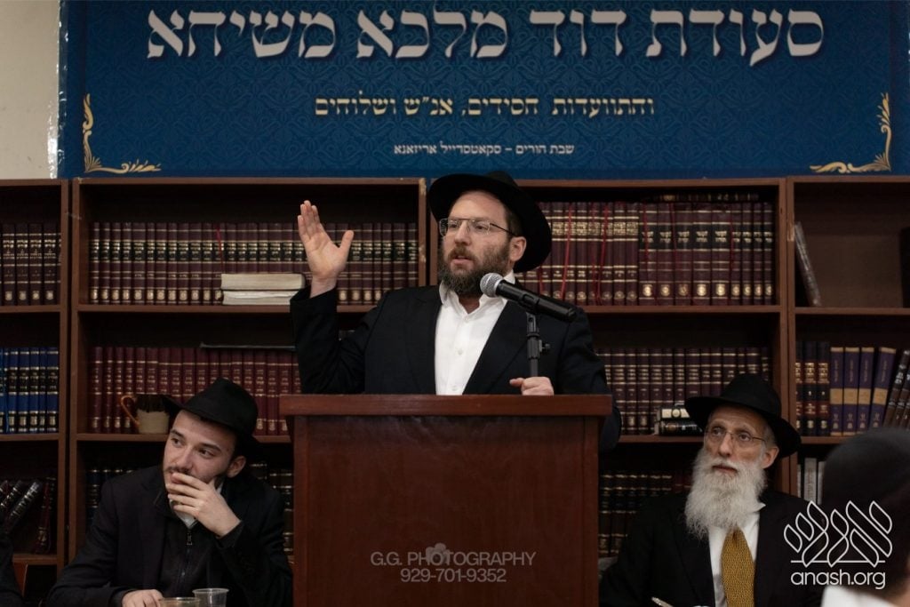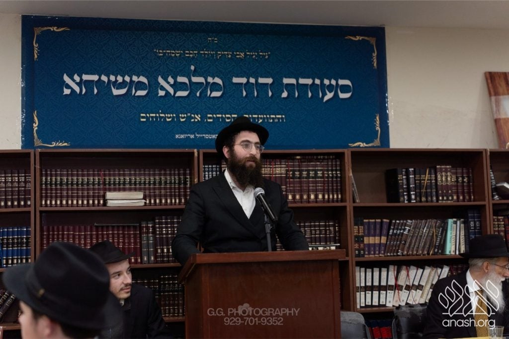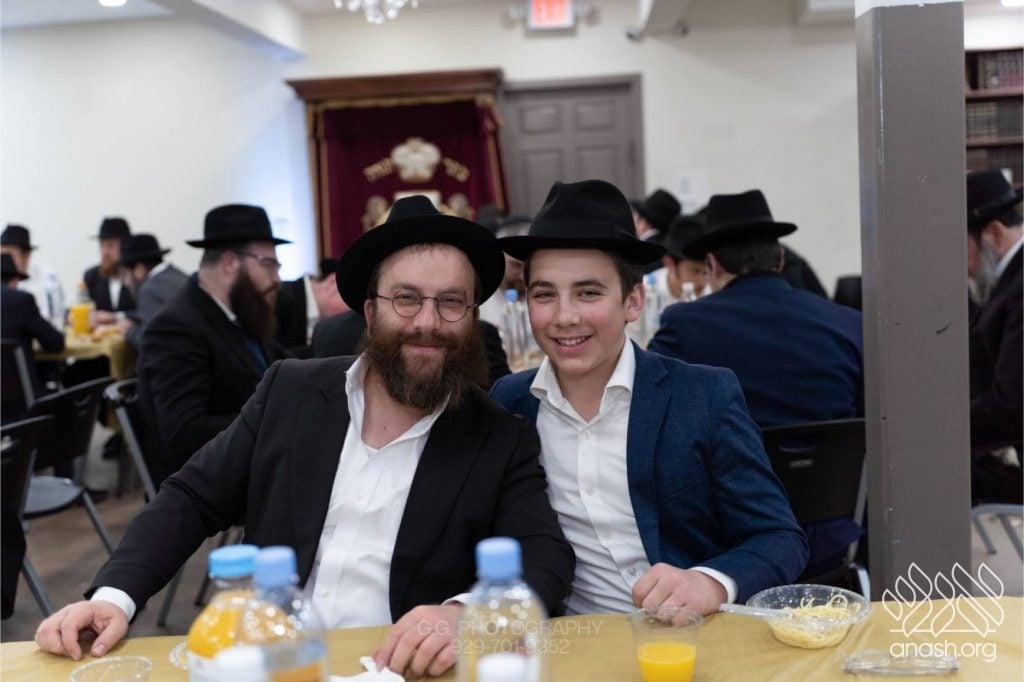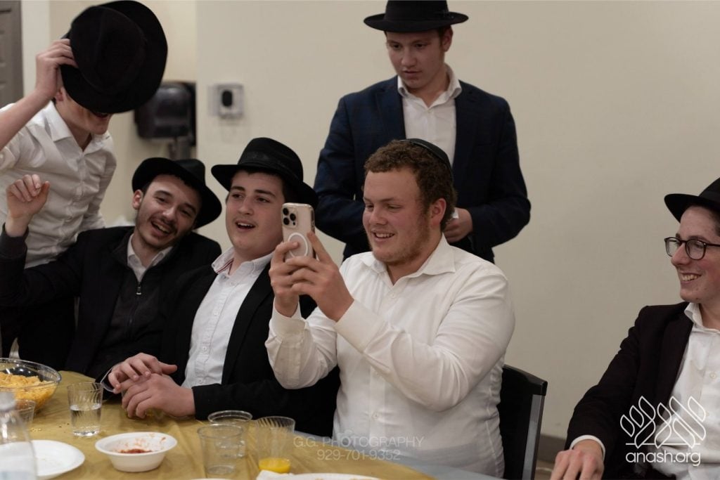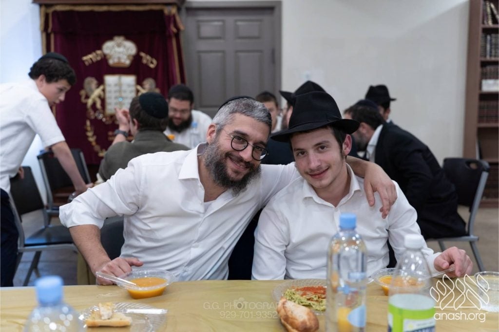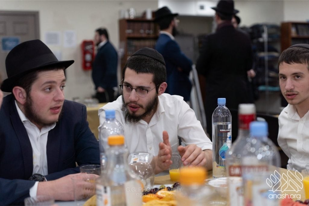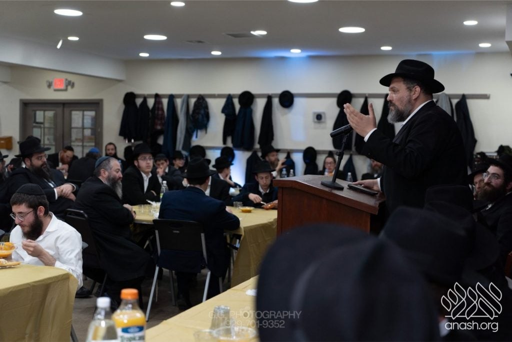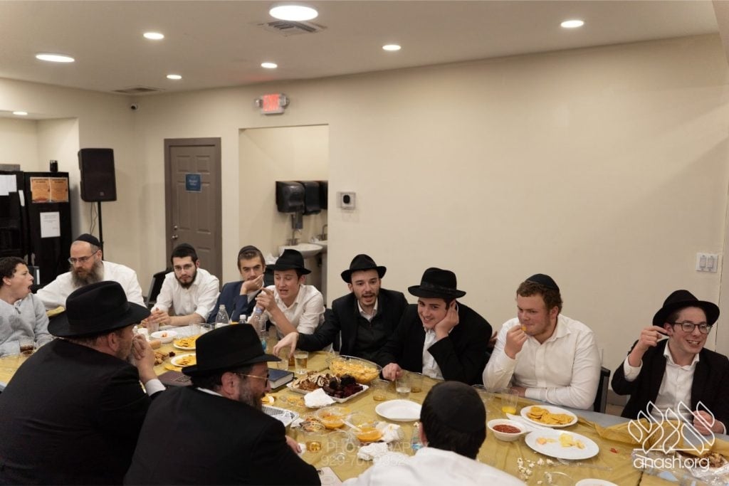 The Friday night seudah featured fathers speaking about the standard and atmosphere the Yeshiva is fostering, flowing naturally into a farbrengen that lasted well past midnight.