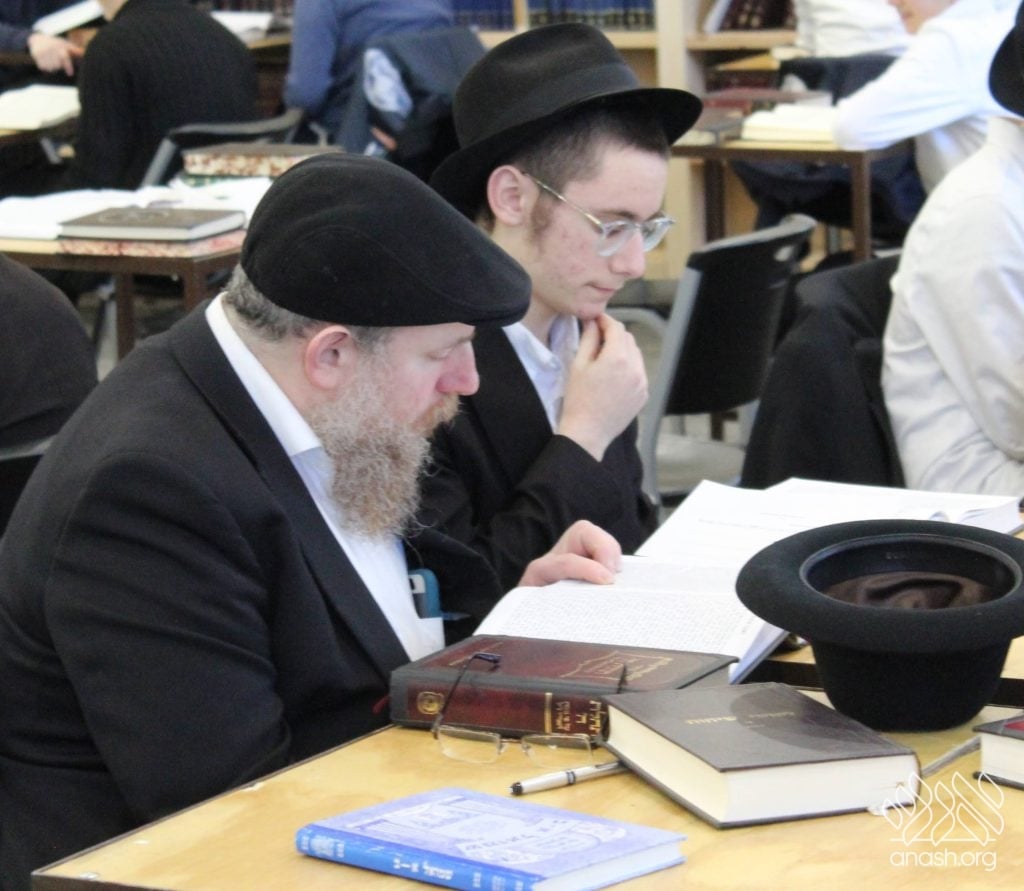 On Shabbos morning, there was a special seder Chassidus led by Rabbi Shmuel Granovetter and Shiur Tanya by Eliyahu Landa. Following Shacharis, which included a strong chinuch-drasha by the Rosh Yeshiva Rabbi Gershon Avtzon, all the fathers and sons joined together for a Shabbos seudah with the fathers’ host families as well as in Yeshiva, where there was a Farbrengen with the Shliach, Rabbi Sholom Heidingsfeld (CA).