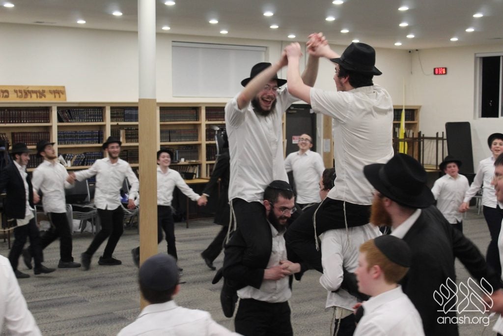 After Minchah, there was a special farbrengen in the Zal with Rabbi Levi Simpson. The farbrengen was followed by Maariv, a video of the Rebbe and dancing for Chodesh Adar. A special Melave Malkah – with the theme of “50 years of Mivtza Chinuch” was held in the building of the new Yeshiva Gedolah.