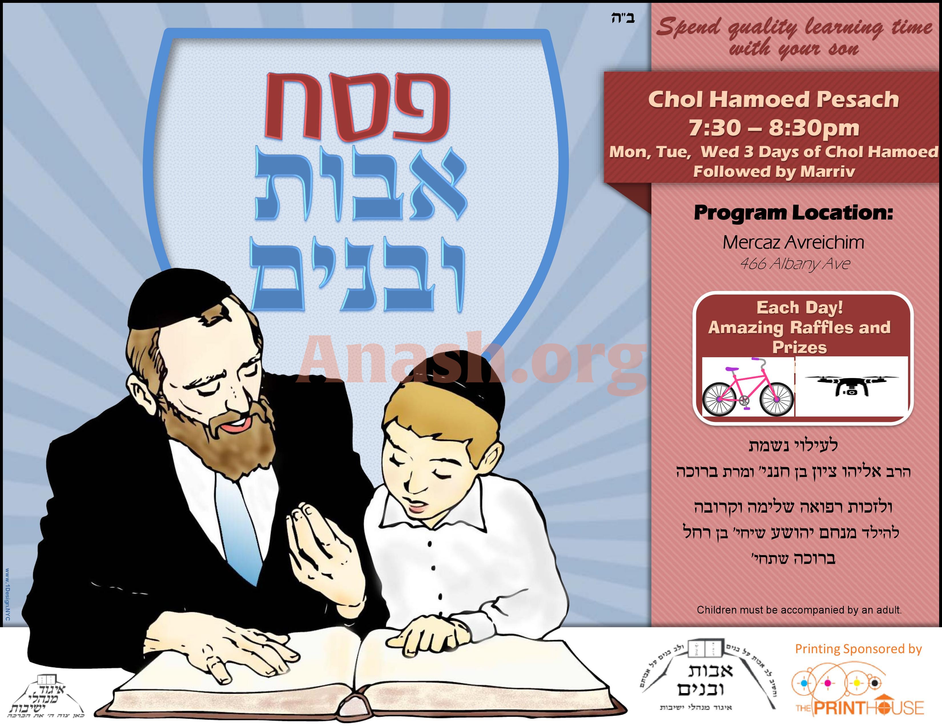 The Igud Menahelei Yeshivos has arranged for the father and son learning program Avos Ubanim to take place this Chol Hamoed at Merkaz Avreichim – 466 Albany Ave.