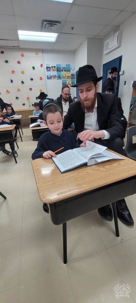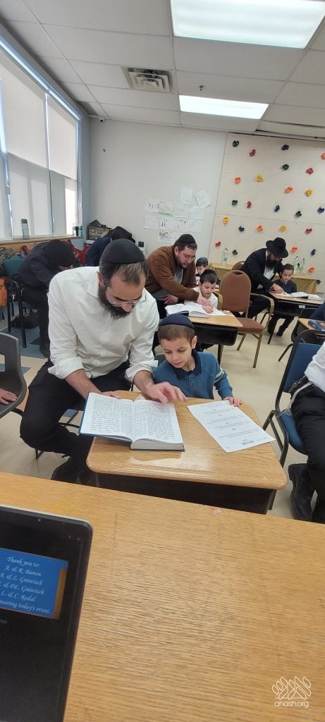 The program began with the boys proudly demonstrating to their fathers how well they can review the entire first perek of Chumash Bereishis directly from the Chumash. The fathers were able to see firsthand the tremendous effort, growth, and progress their sons have made through their hard work and learning.