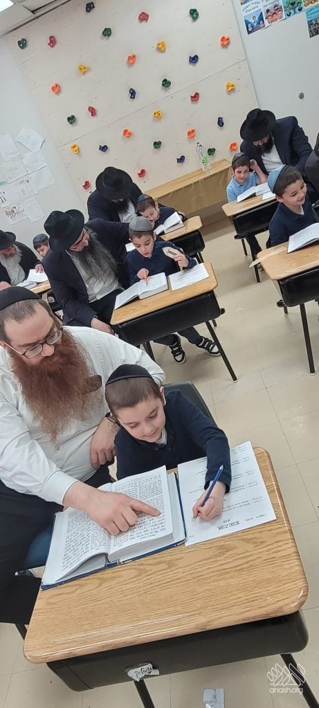 The boys clearly felt the pride and encouragement of their fathers, strengthening the special bond between them. Much of the success of the program reflects the dedication of Rabbi Menkes, who puts tremendous heart, energy, and creativity into his class. Rabbi Menkes works hard to make learning meaningful and enjoyable, bringing excitement and fun into the classroom while helping each student grow in their learning and Yiddishkeit. His enthusiasm and care for his talmidim are clearly felt by both the boys and their families.