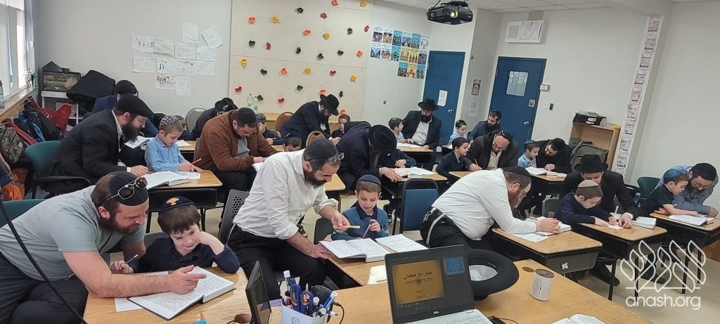 On Sunday, fathers of the talmidim in Rabbi Yisroel Menkes’ Kita Aleph class at YTTL Montreal came to the Yeshivah to spend meaningful, quality time with their sons and celebrate a Siyum on Parshas Bereishis.