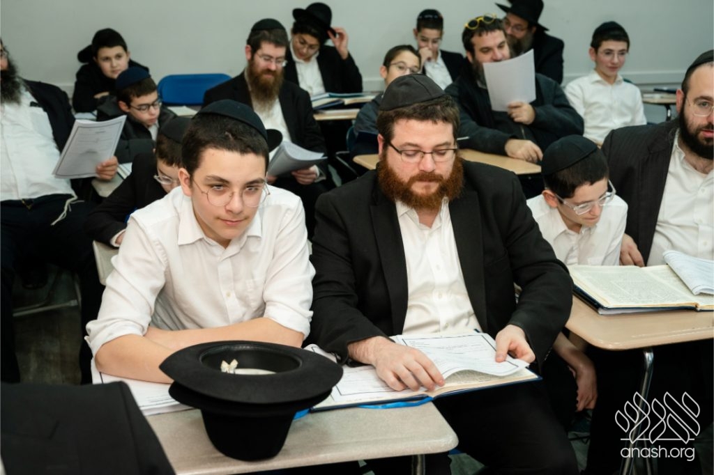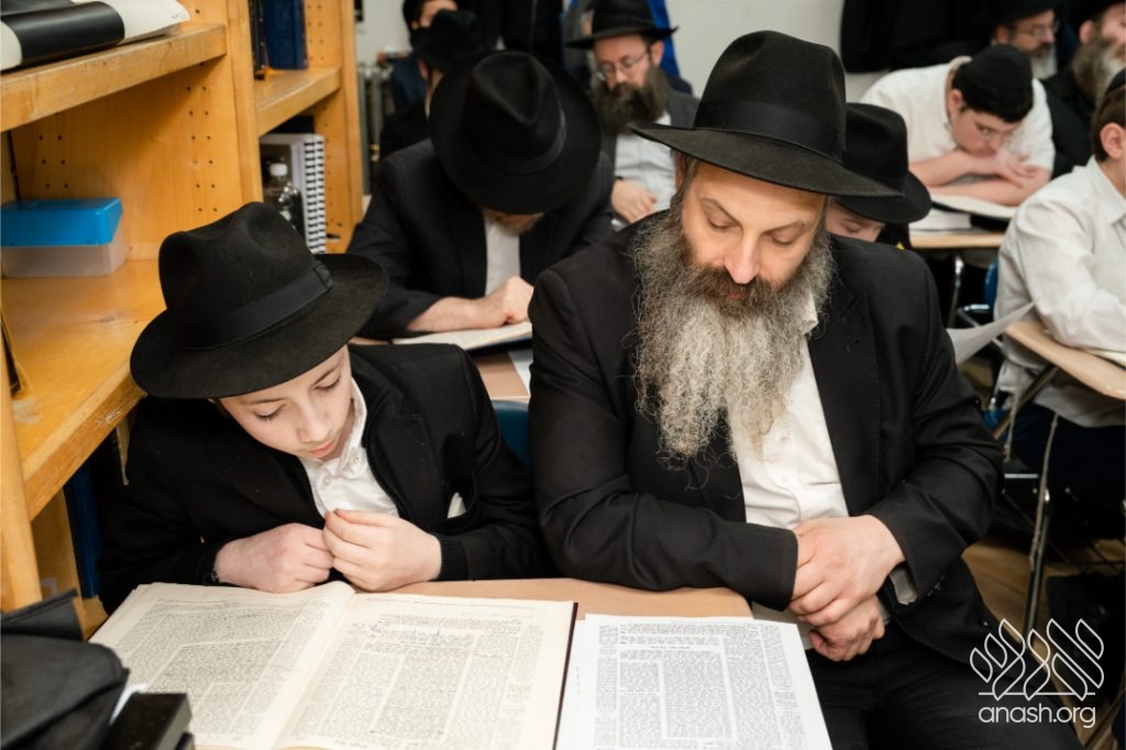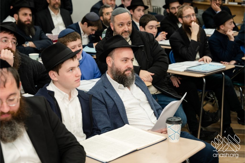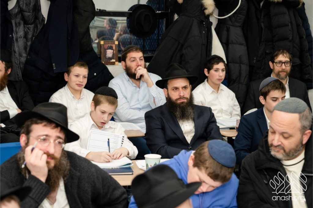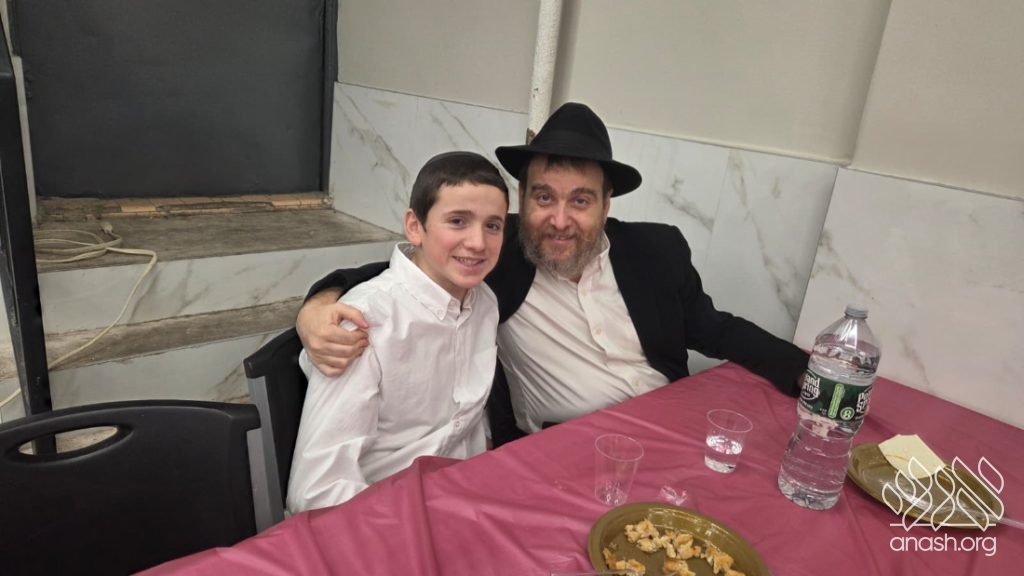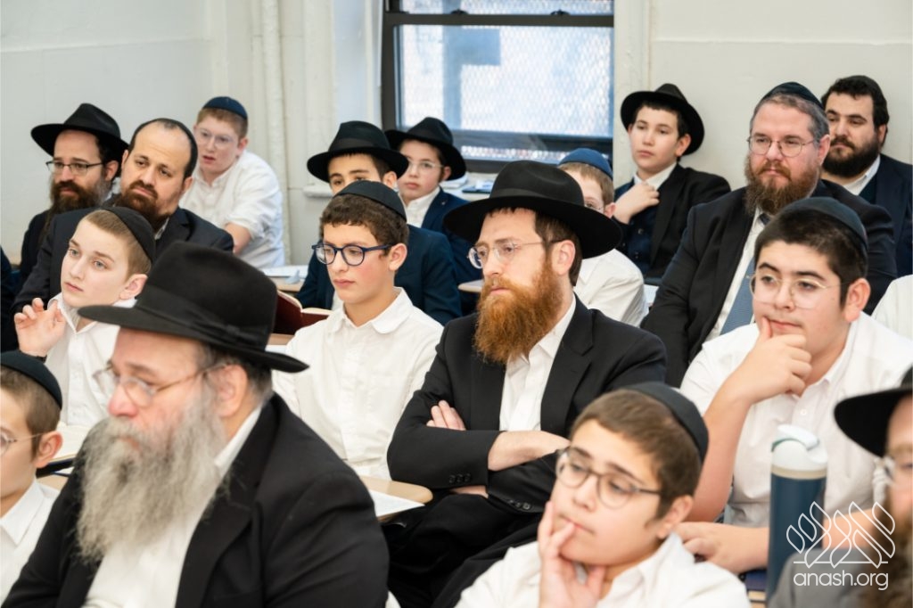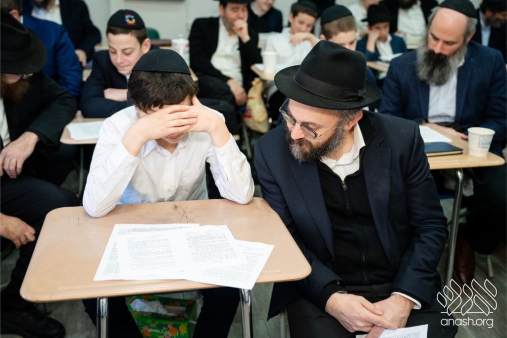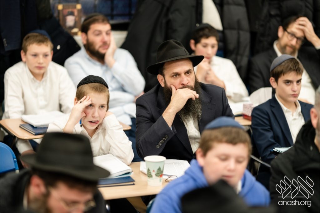 Following the learning, fathers and sons viewed a Chanukah Rally of the Rebbe as part of the Connection Point program. The talmidim watched a segment from the rally and answered questions based on it, strengthening their connection to the Rebbe’s words in a meaningful and engaging way.