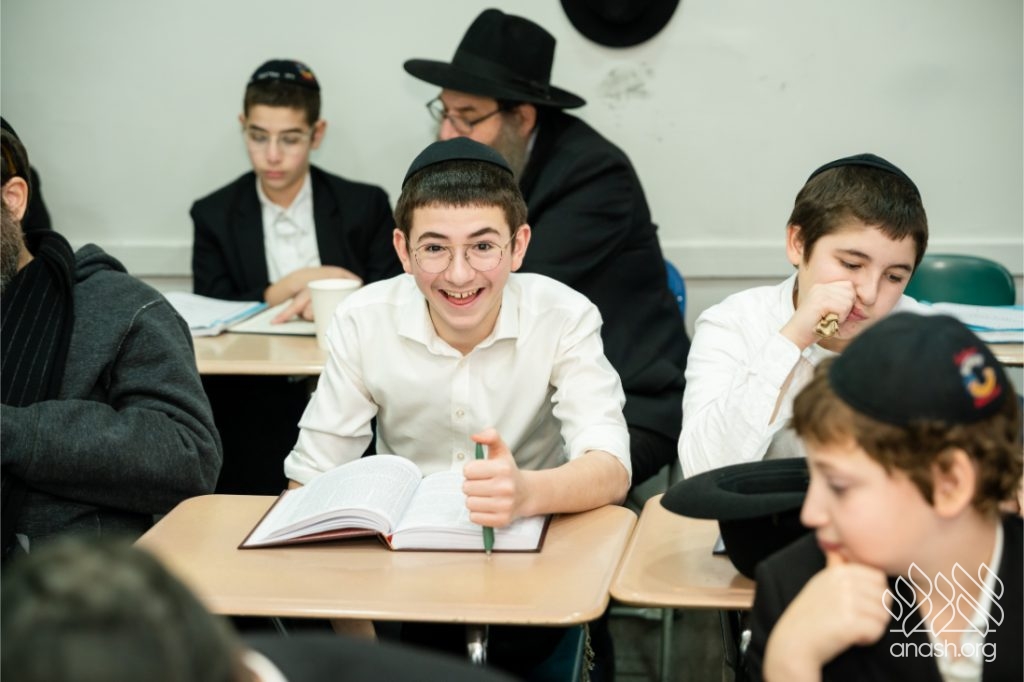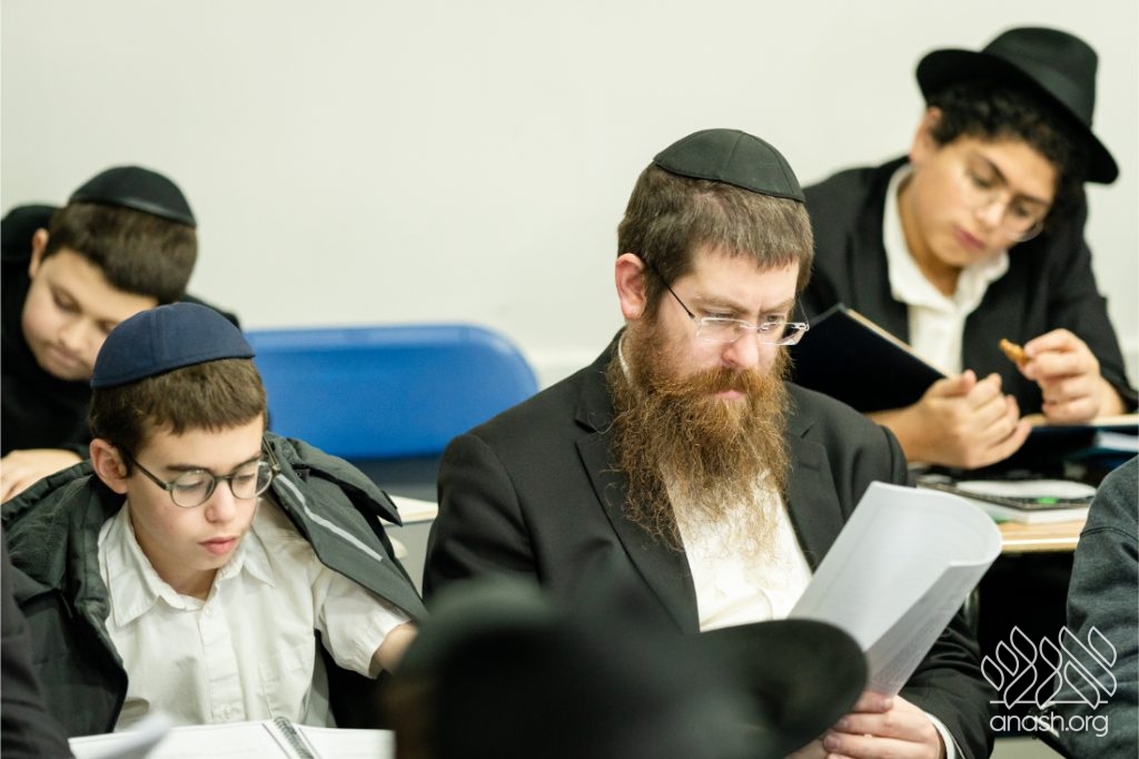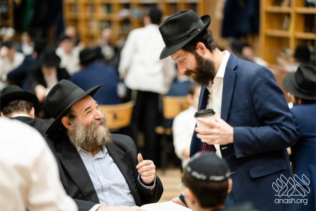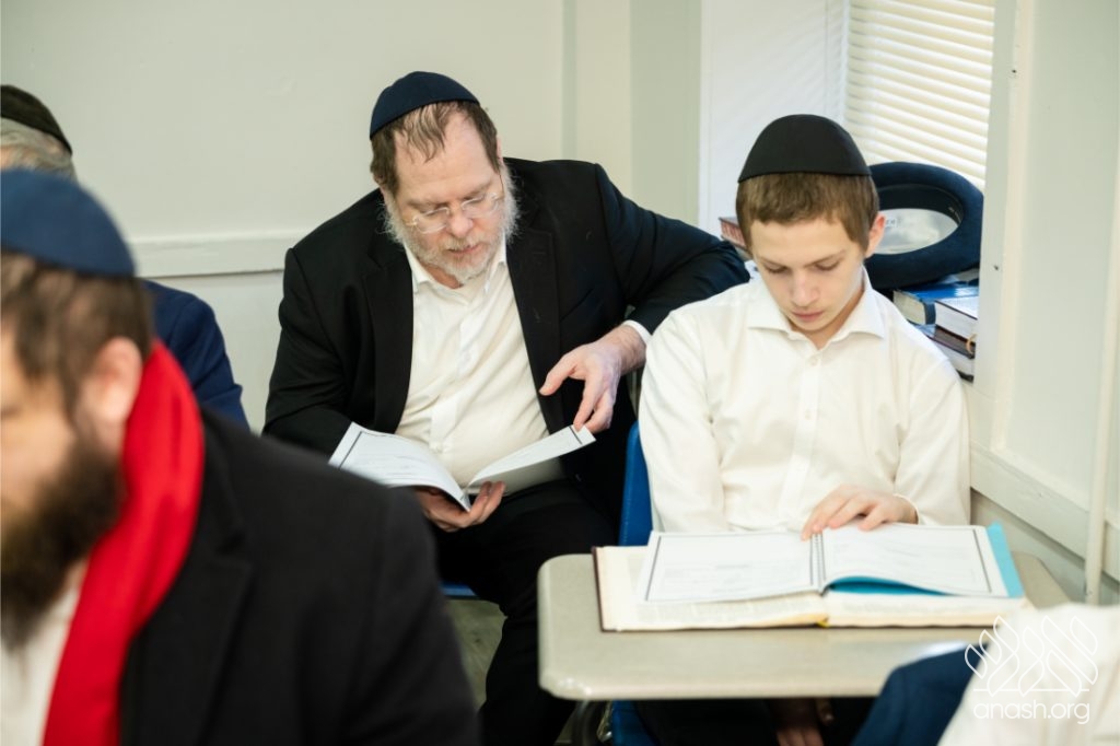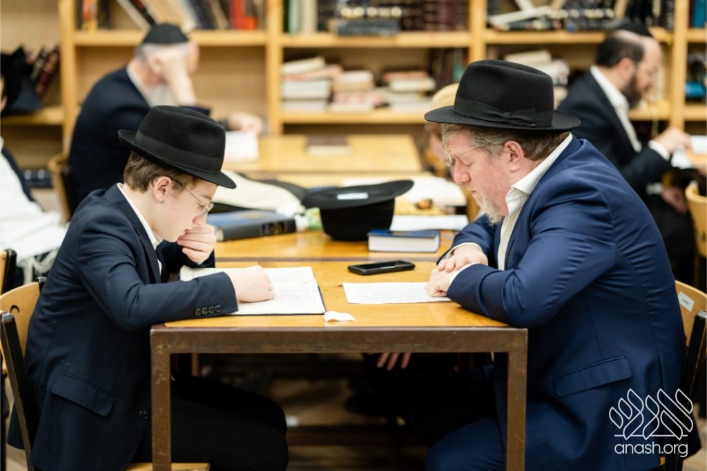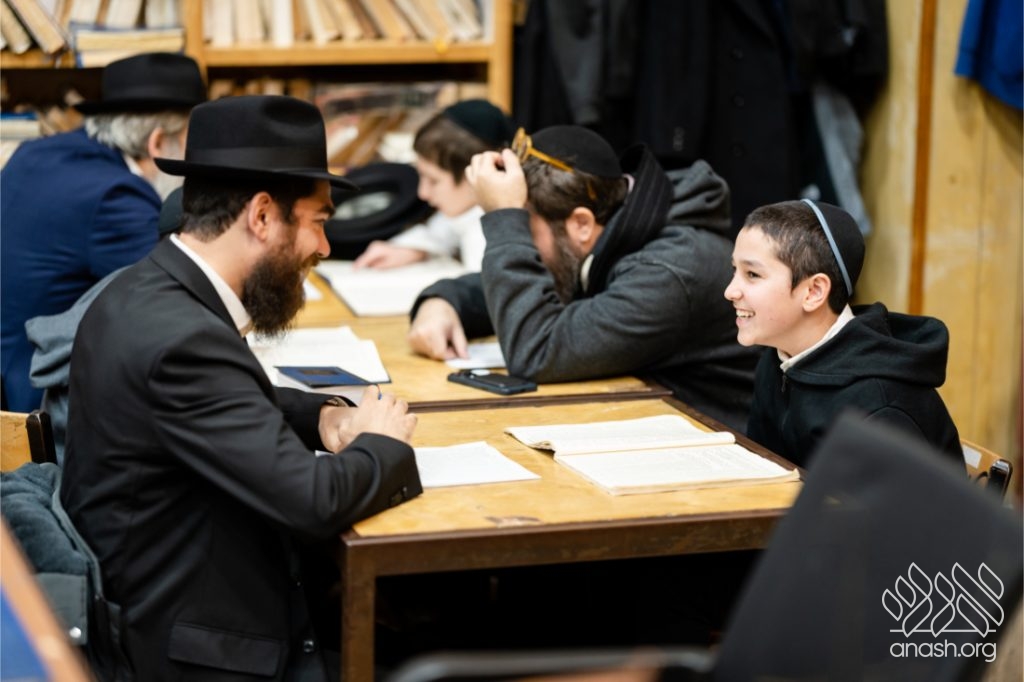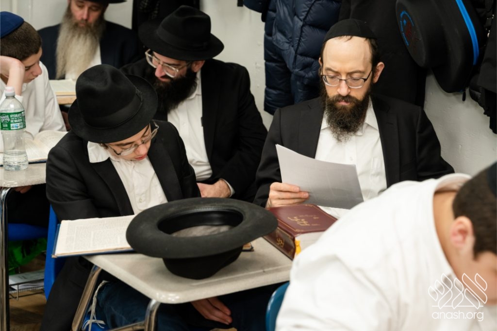 Following the learning, fathers and sons viewed a Chanukah Rally of the Rebbe as part of the Connection Point program. The talmidim watched a segment from the rally and answered questions based on it, strengthening their connection to the Rebbe’s words in a meaningful and engaging way.