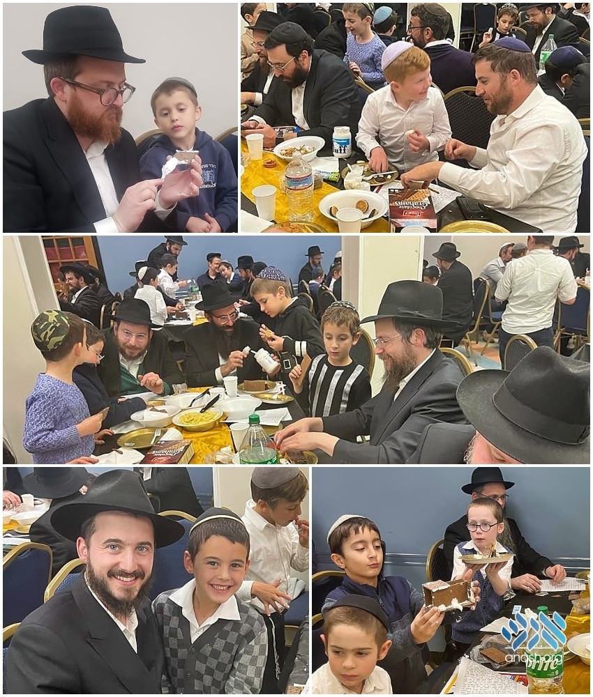 On Motzei Shabbos Parshas Vayeitzei, talmidim from the first and second grades in Cheder Menachem of Los Angeles, along with their fathers and some grandfathers gathered for the annual Melava Malka in honor of 14 Kislev.