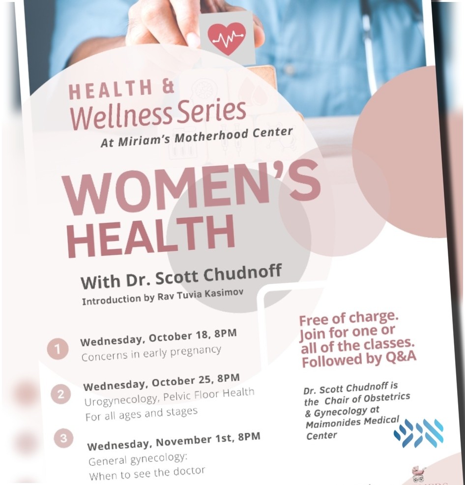 Join this Wednesday, 17 Cheshvan, November 1st at 8:00 PM for the final class of a three-part Health and Wellness Lecture Series, hosted at Miriam’s Motherhood Center. The series, offered free of charge, features Dr. Scott Chudnoff, Chair of Obstetrics and Gynecology at Maimonides Medical Center, providing invaluable insights into women’s health.