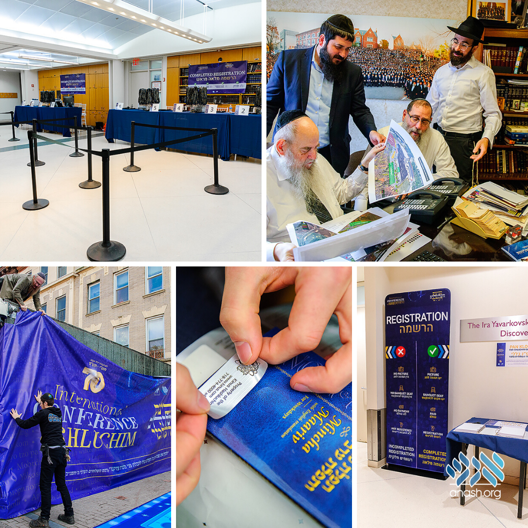 After months of planning and preparation, the dedicated Kinus staff place the finishing touches on the International Conference of Shluchim which is set to begin this evening.