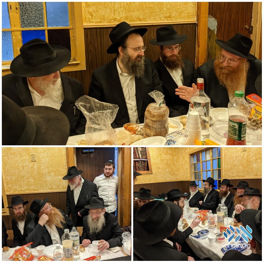 The 7th Sheva Brachos for the daughter of Crown Heights Rov Yosef Braun was held in the small zal at 770 Eastern Parkway. Rabbi Chaim Boruch Halberstam was honored with a bracha.