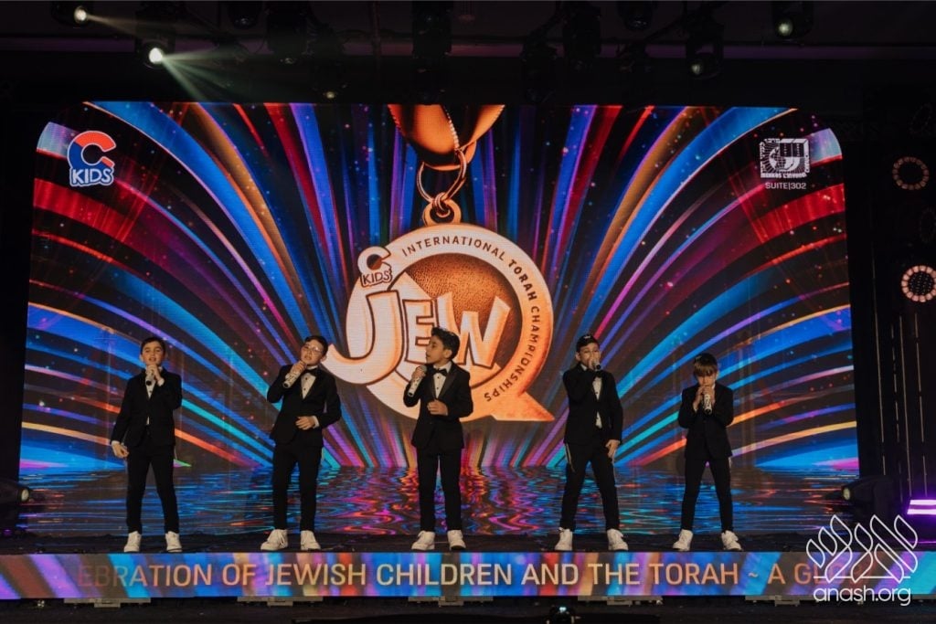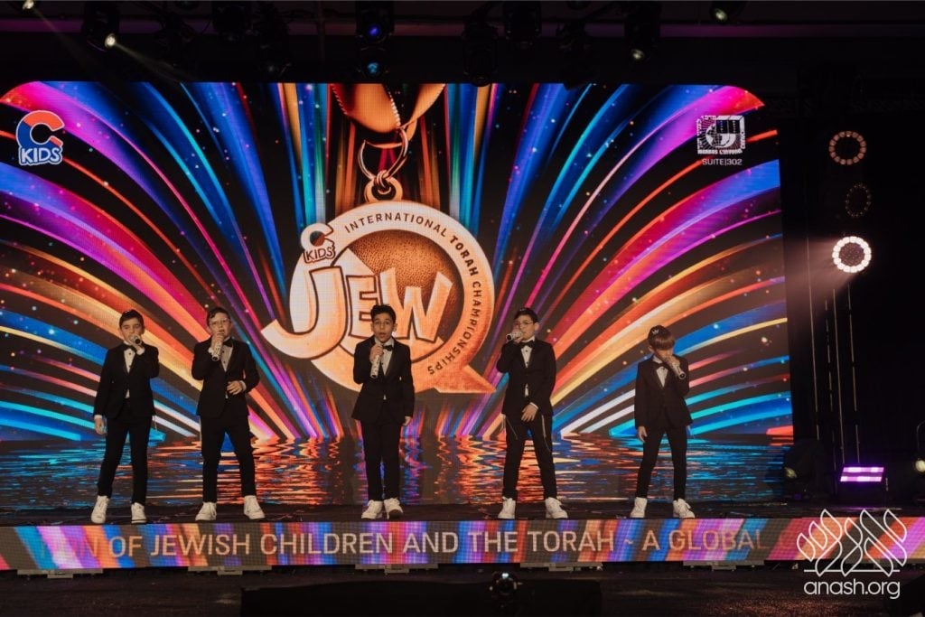 The championship, the culmination of months of independent Torah study by over 4,000 children from 250 communities across 175 cities, featured the most interactive game show format to date, with professional video, audio, and props throughout.
