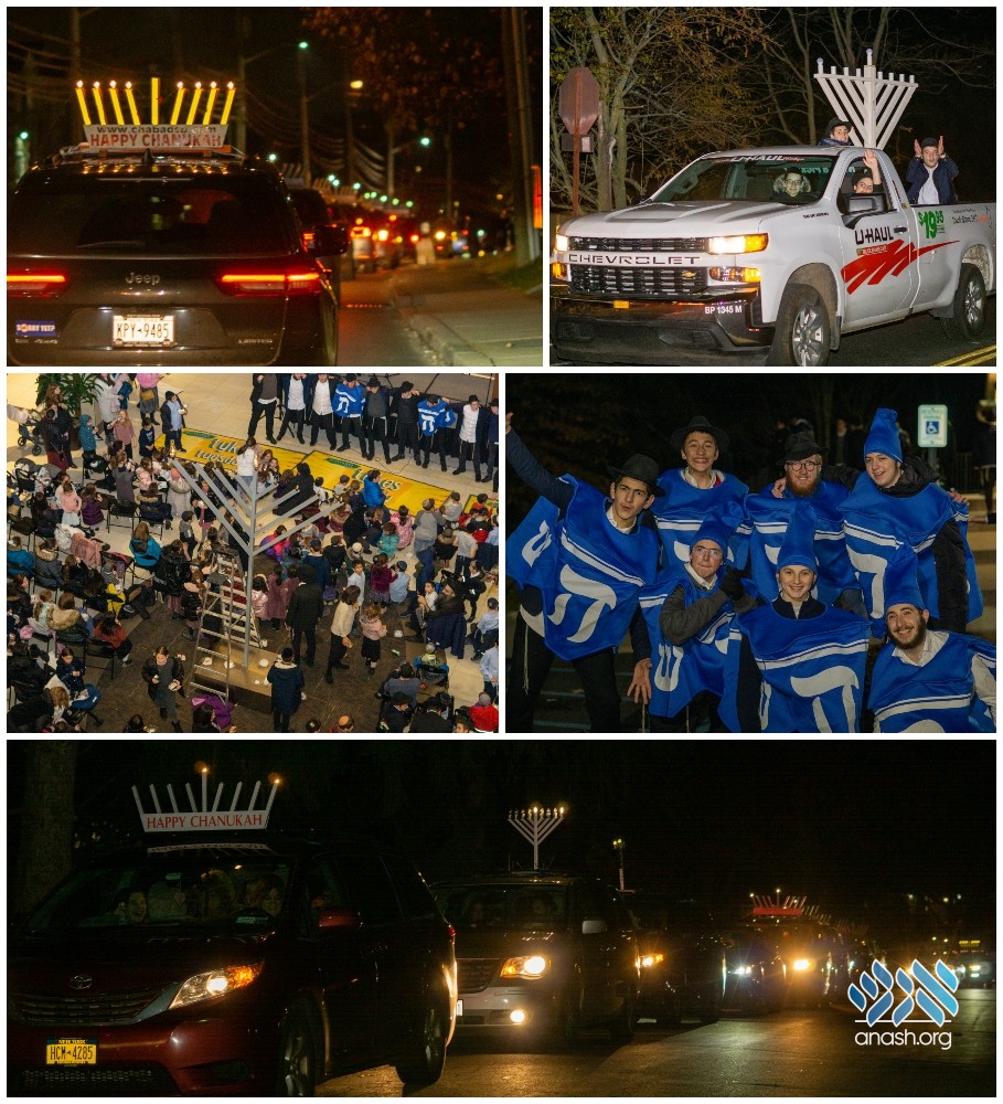 Over 120 cars were joined by 5 Mitzvah Tanks, 2 pickup trucks, a fire truck and ambulances for the largest menorah parade in Monsey’s history. The parade concluded with a grand Chanukah party and menorah lighting.