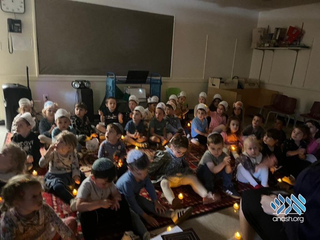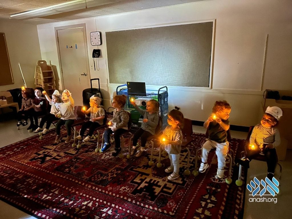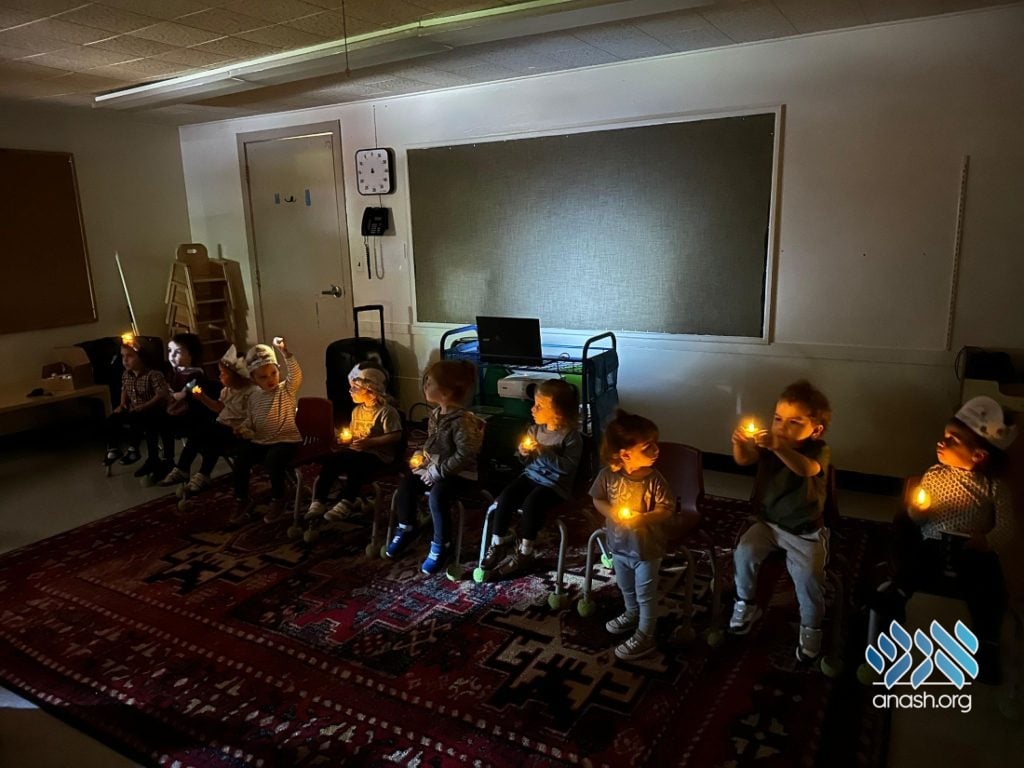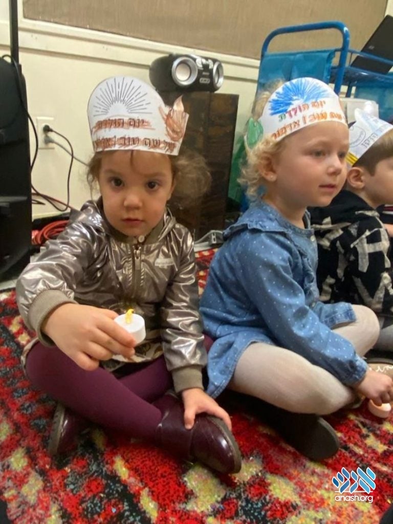 In the preschool, the children gathered for a Farbrengen with Limmudei Kodesh principal Mrs. Groner. They said lechaim, sung niggunim, and received special candles as they learnt about the two lights the Alter Rebbe brought into the world.