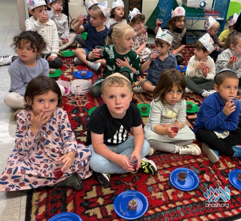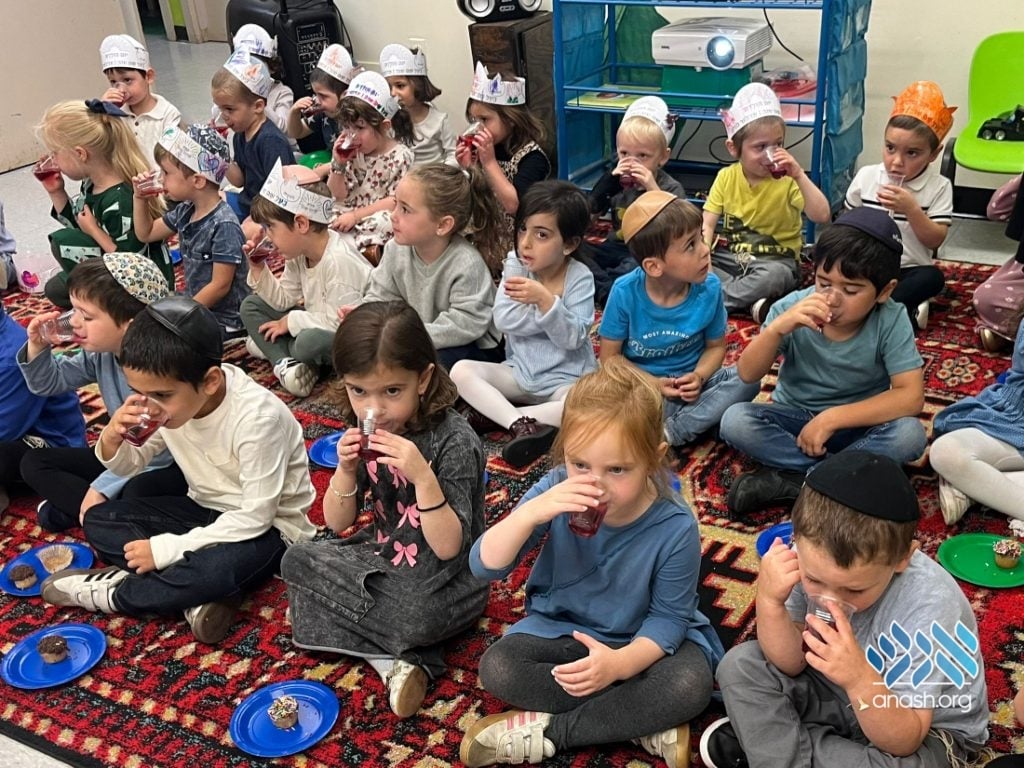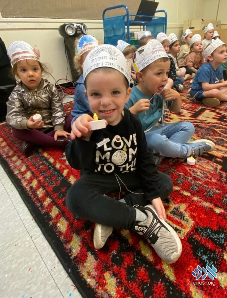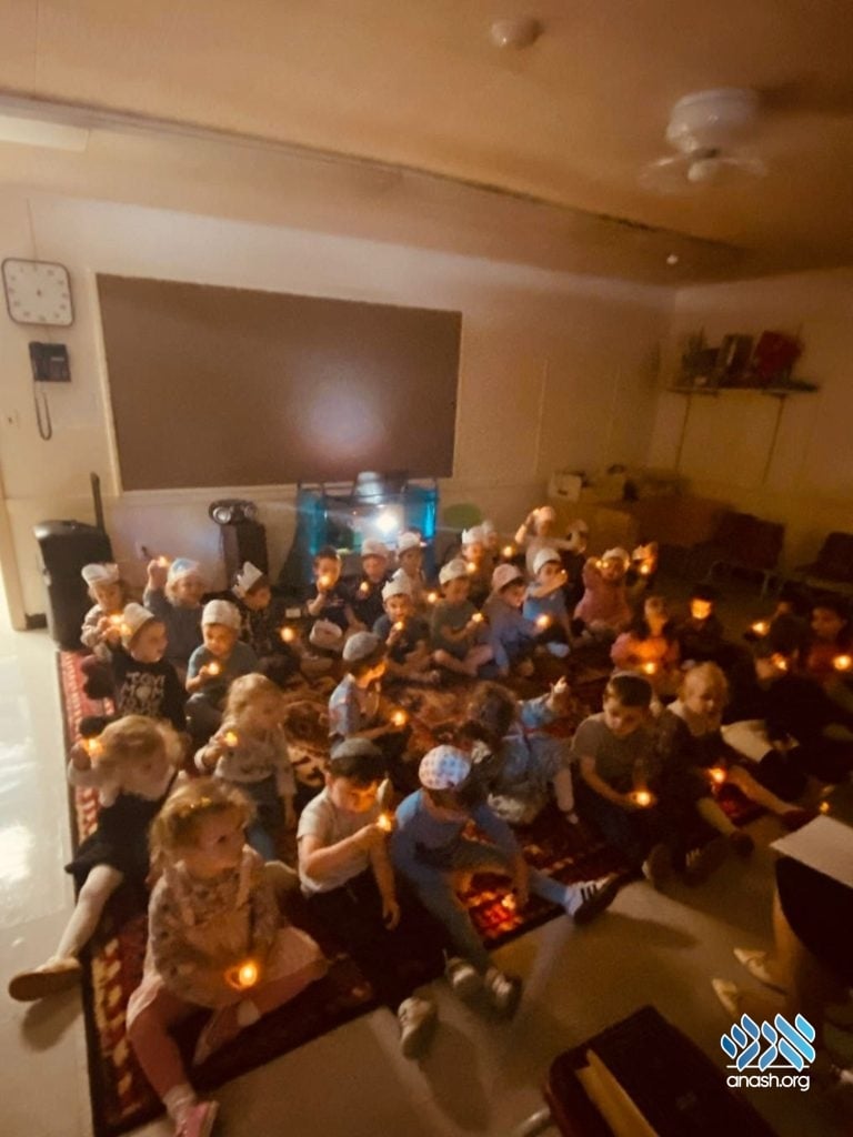 In the preschool, the children gathered for a Farbrengen with Limmudei Kodesh principal Mrs. Groner. They said lechaim, sung niggunim, and received special candles as they learnt about the two lights the Alter Rebbe brought into the world.