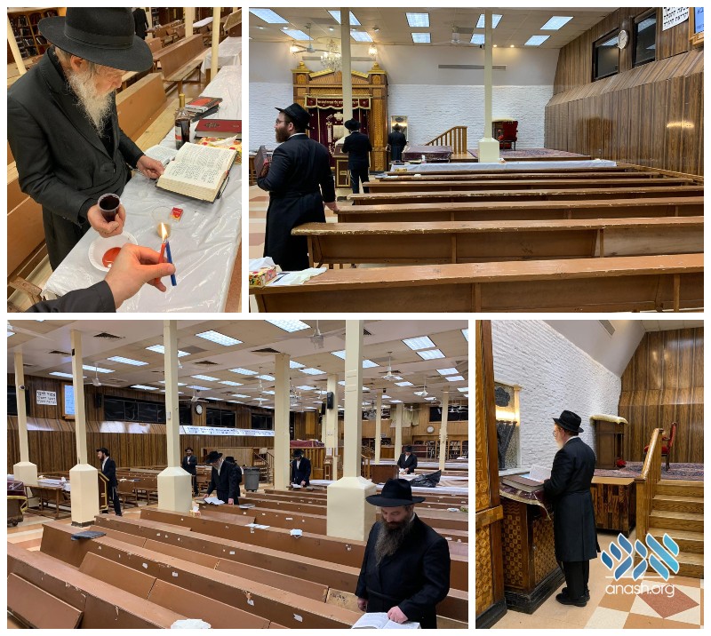 A rotation was set up, with the group of ten men allowed inside changing for Friday night, Shabbos morning and Shabbos afternoon. Among those allowed to join were chassanim who will be getting married this coming week, and desired to have their aufruf in the Rebbe’s shul.