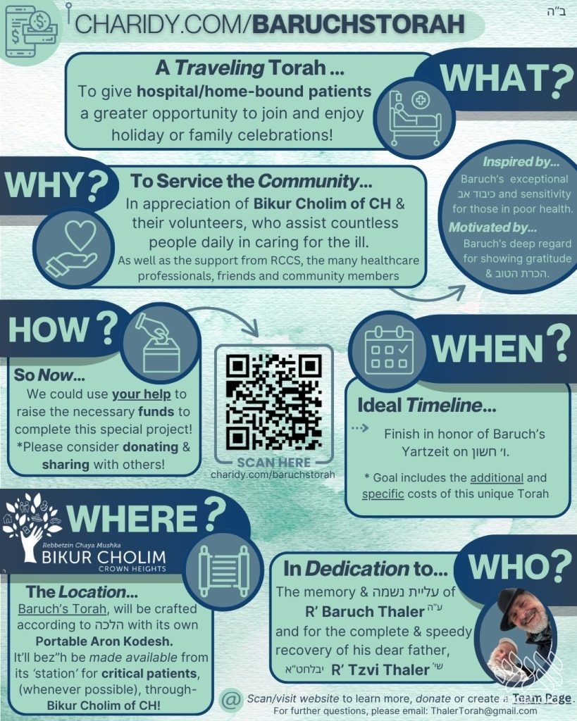 This special Torah will be made available to home-bound and hospitalized patients in the community through Bikur Cholim of Crown Heights.