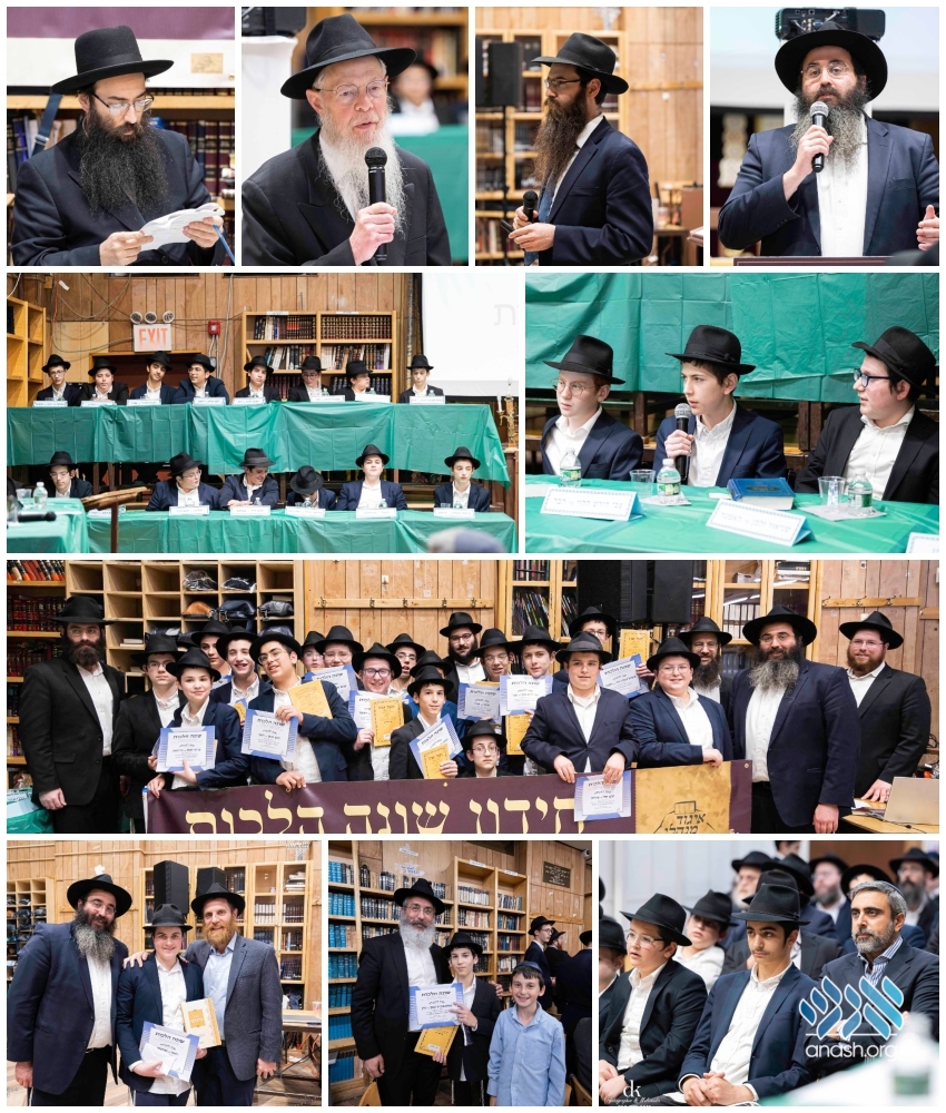 32 finalists from Oholei Menachem, Lubavitcher Yeshiva, Cheder Chabad Monsey, Cheder Lubavitch Morristown and Queens Yeshiva competed in a Chidon testing them on their knowledge of Kitzur Shulchan Aruch.