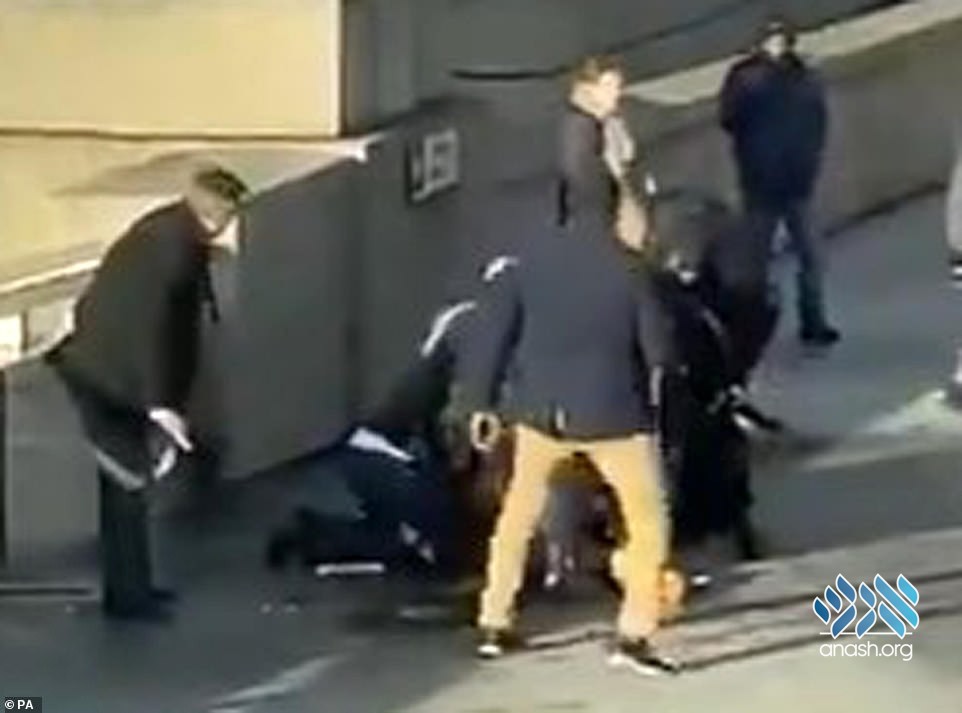 Police said they were called to a stabbing near the bridge just before 2:00 p.m. local time. One man was shot by police, they said.