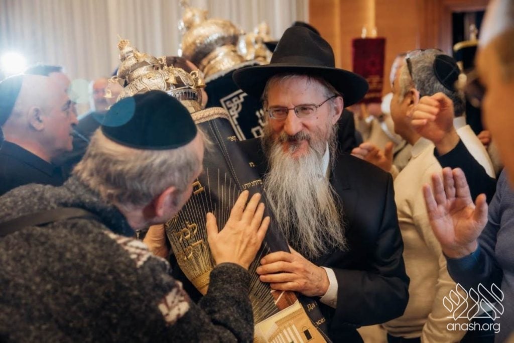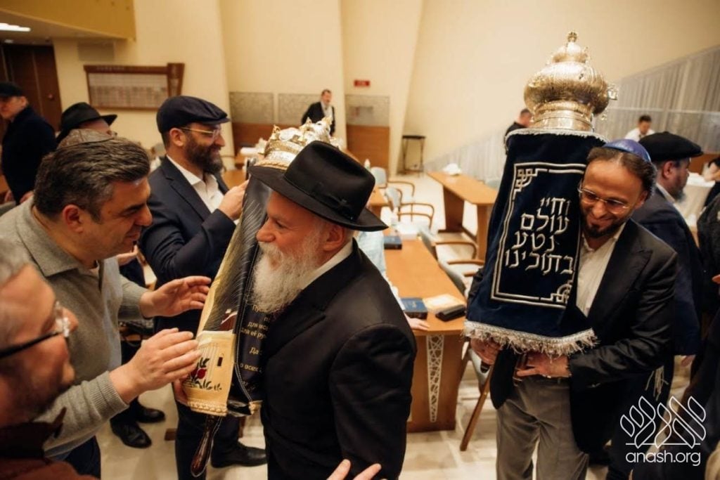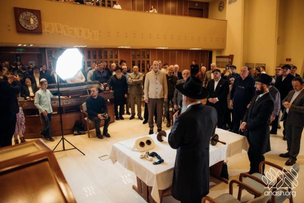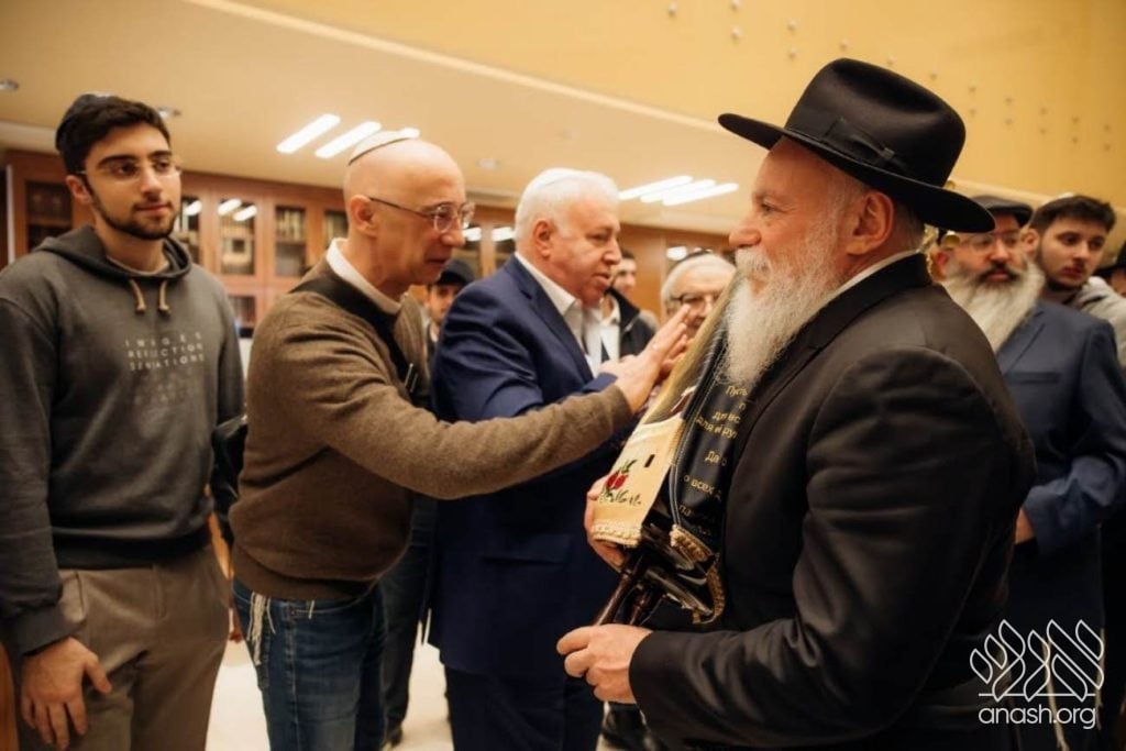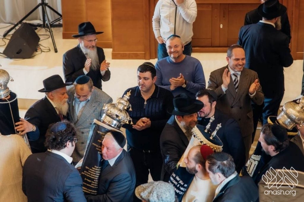 A prominent Siyum Sefer Torah was held in Moscow in honor of Rabbi Aleksander Boroda, president of the Federation of Jewish Communities of Russia (FJCR), in recognition of his decades of tireless work on behalf of Yiddishkeit across Russia.