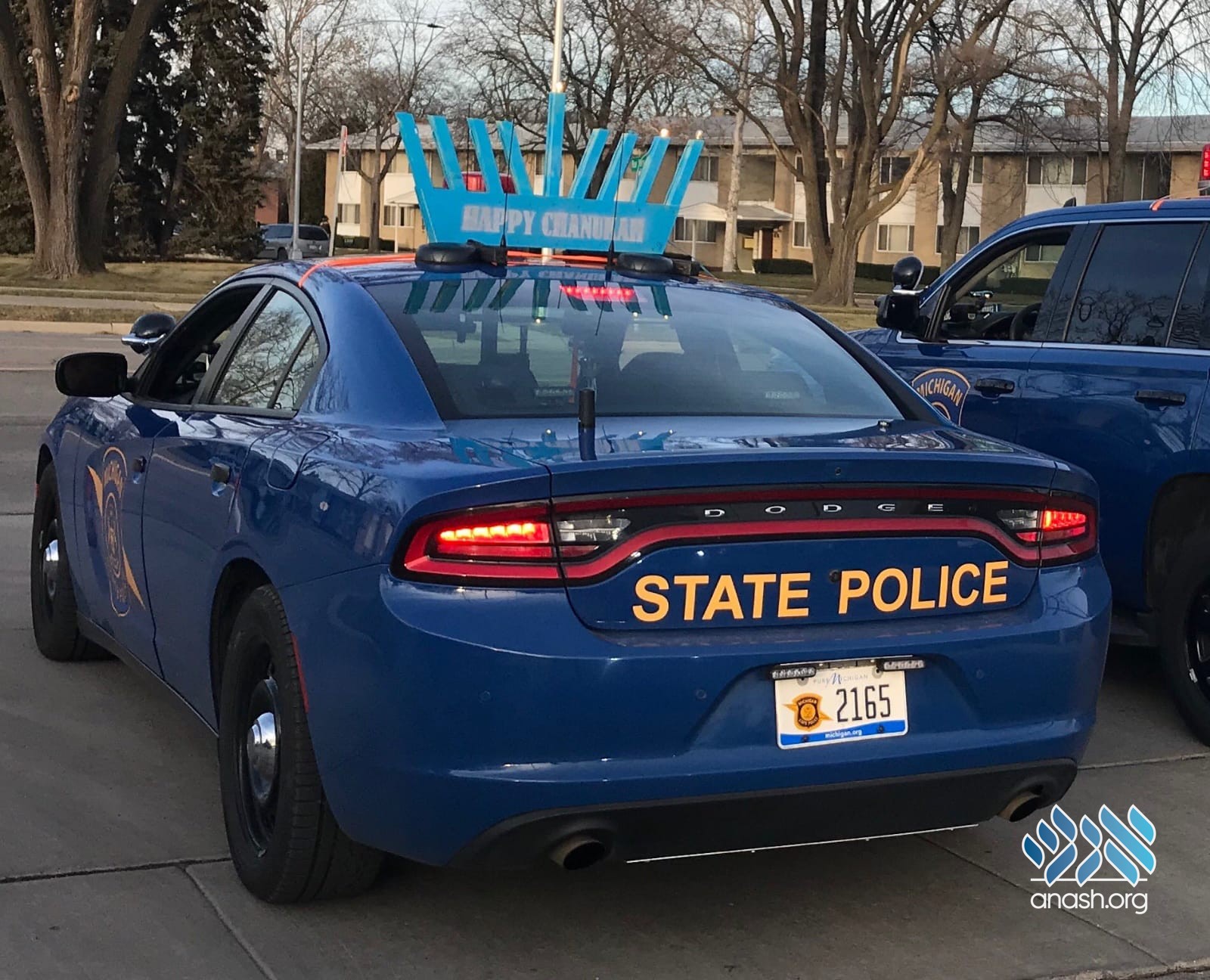 MSP Metro Detroit proudly wore a menorah on the job today, and tweeted: On the second day of Hanukkah the Metro North Post continues the tradition of leading the menorah parade through Oak Park. HappyHanukkah!