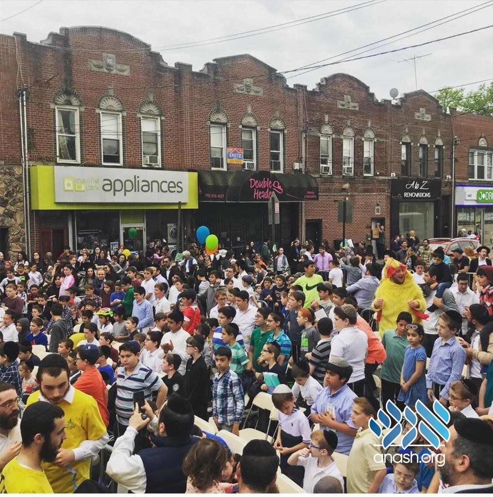 Members of the Flatbush community took to the streets to celebrate Lag Baomer with Mayan Yisroel.