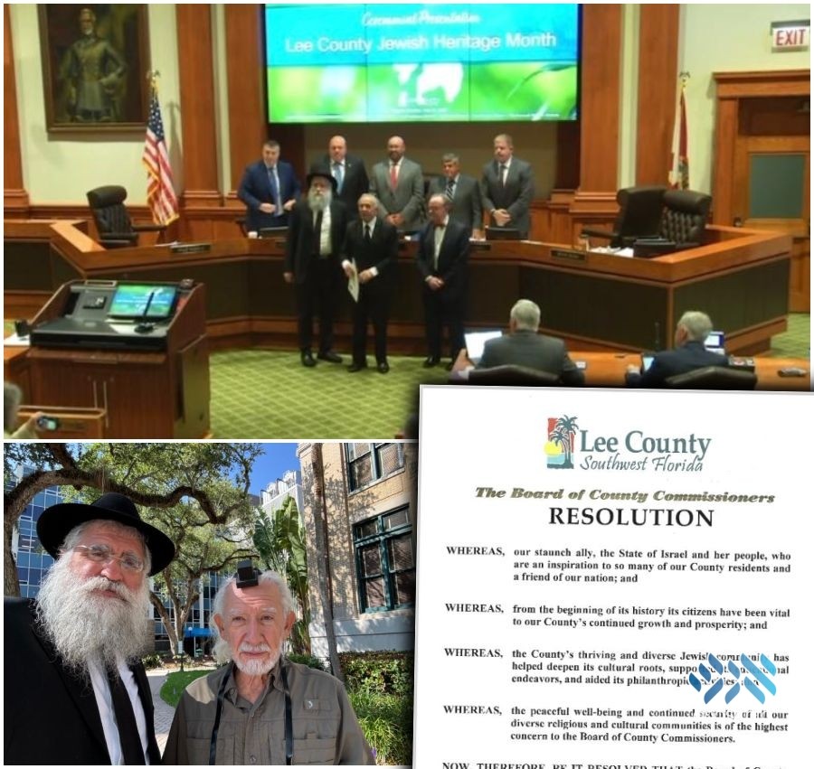 Lee County, Florida commissioners proclaim Jewish Heritage Month as a show of support for Eretz Yisroel and the Jewish Community of Southwest Florida.