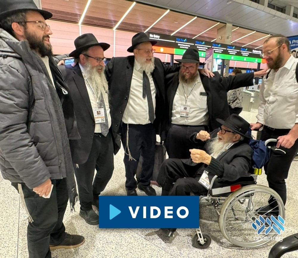 Following the Kinus Hashluchim banquet on Sunday night, Rabbi Avrohom Korf, who got a special mention at the banquet, made his way to the airport to travel back to Florida with a dance and a song.