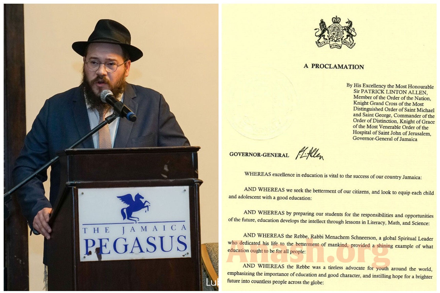 The proclamation was signed by Honorable Governor-General Sir Patrick Allen. And one thousand copies of it were distributed to the one thousand people in attendance. “It took a year and a half of hard-earned effort to create this event,” shared Rabbi Raskin, “we thank the governor-general and the Jamaican government for making it happen.” The event was initially held in honor of Chabad of Jamaica’s fifth anniversary and included speaker Eva Schloss. The signed proclamation was a surprise to the guests in attendance.